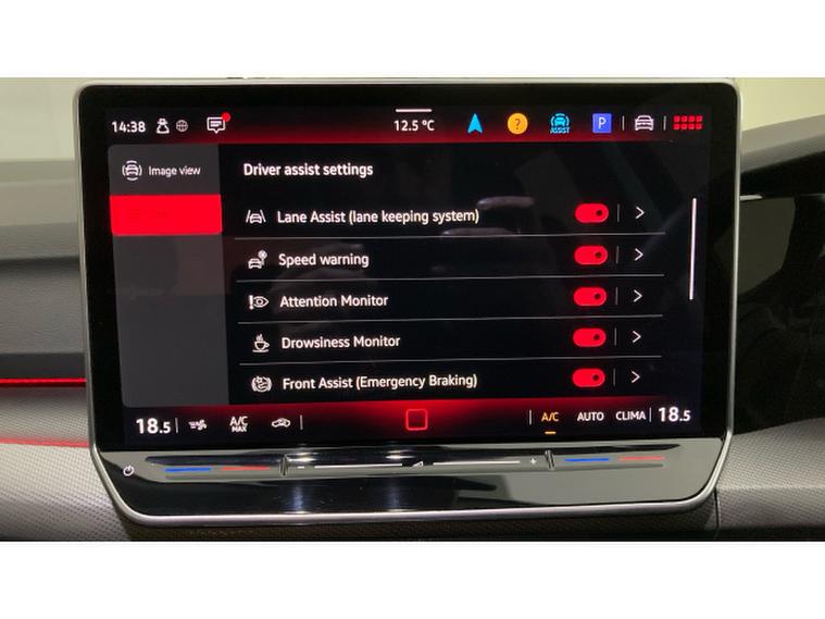 Safety and driver assistance are standout features. Adaptive Cruise Control with speed limiter works alongside Front Assist with Autonomous Emergency Braking, monitoring vehicles, pedestrians and cyclists. Lane Assist, Travel Assist and Emergency Assist help make longer journeys effortless, while the proactive passenger protection system adds further peace of mind. The Lights & Vision package includes automatic high-beam control, rain-sensing wipers and an auto-dimming rear-view mirror for enhanced visibility in all conditions.