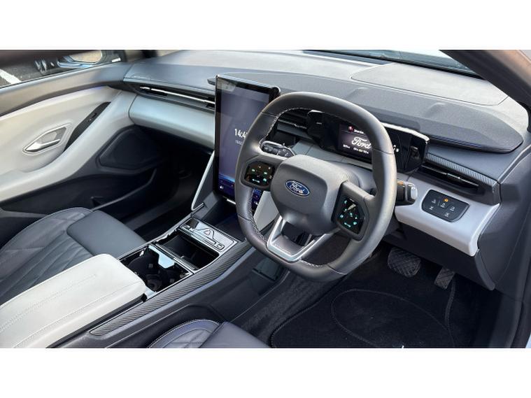 Ford Explorer 210kW Premium 77kWh 5dr Auto Electric Estate, , Discover cutting-edge electric performance and premium comfort with the 2025 Ford Explorer Electric Estate 210kW Premium 77kWh Auto, finished in crisp Frozen White and with under 7, 000 miles. This modern electric SUV blends bold design with impressive everyday usability, powered by a strong 210kW electric motor that delivers smooth, instant acceleration and a quiet, refined driving experience. The Premium specification offers a high level of equipment, including a large touchscreen infotainment system with navigation, Apple CarPlay and Android Auto, digital driver display, adaptive cruise control, heated seats and steering wheel, advanced driver assistance systems and stylish alloy wheels, making it a superb long-distance and family companion. Charging at home using a standard 7kW wallbox, adding around 49kWh of charge would take approximately 7 hours, ideal for overnight charging, and using an off-peak electricity tariff such as E.ON at around 7p per kWh, this would cost roughly 3.50, providing an estimated 160–180 miles of range depending on driving conditions. When using rapid public charging, the Explorer supports fast DC charging, allowing a typical 20% to 80% charge in around 25 - 30 minutes, perfect for quick top-ups on longer journeys. With its low mileage, premium features, excellent electric range and very low running costs, this Ford Explorer Electric represents a fantastic opportunity to step into stylish, future-ready motoring.