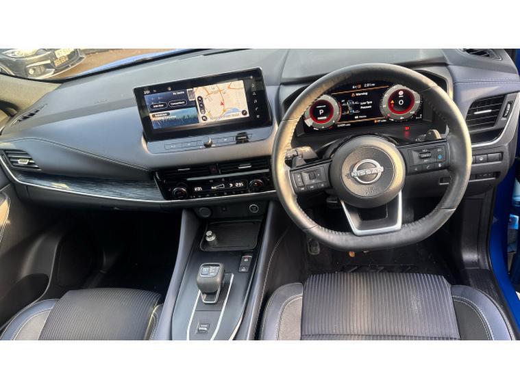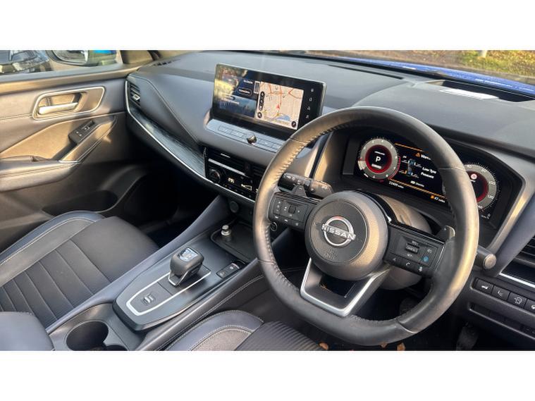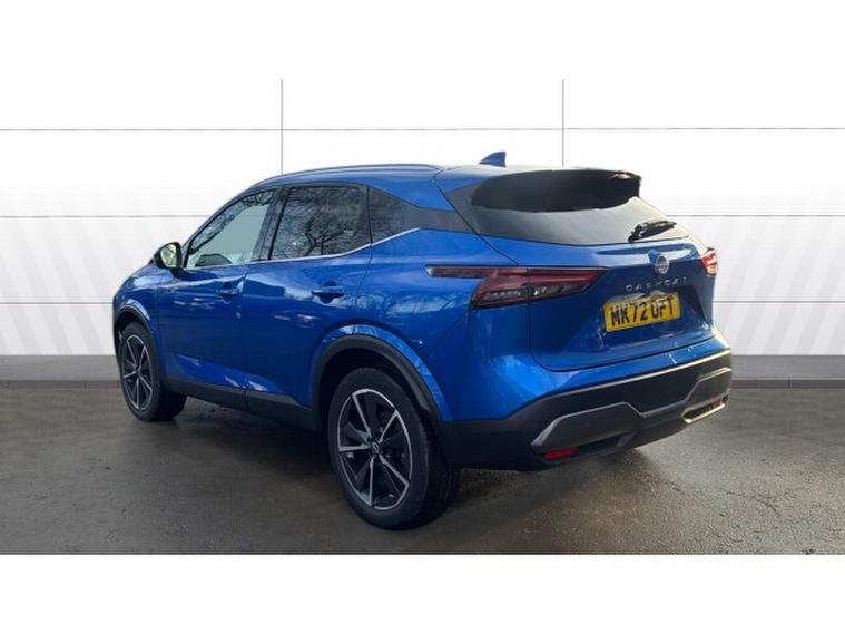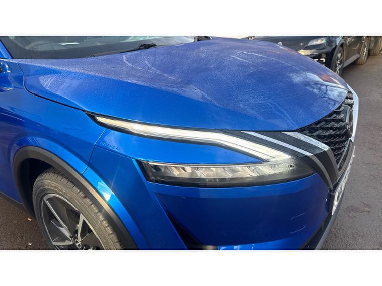 Nissan Qashqai 1.3 DiG-T MH 158 Tekna 5dr Xtronic Petrol Hatchback, , Here with us at Renault Leicester LE27JU we have a stunning UK favorite top specification Nissan Qashqai Tekna automatic finished in metallic blue, registered on 26/10/2022 with only 22409 miles on since new representing fantastic value for money. This brilliant SUV comes with plenty of spec and tech including diamond cut alloy wheels, rear privacy glass, roof rails, keyless entry with push button start, electronic tailgate, half leather interior with heated front seats and electric adjustable drivers seat, heated steering wheel, heads up display, wireless phone charging, apple carplay/android auto for phone sharing, Bluetooth for streaming your favorite music or taking important calls on the move. ISOFIX ready seating also features along with climate controlled air conditioning, adaptive stage 1 autonomous driving/speed limiter, D shaped steering wheel, shark fin aerial, safety shield technology including traffic sign recognition, forward brake assists, blind spot warning, lane departure warning, automatic lights/wipers and high beam. panoramic sunroof with one touch shade, heated front windscreen, full around view parking cameras ensure you always park with ease assisted with front/rear parking sensors and integrated park assist, all of our cars also come with two keys, fully inspected and HPI clear for your peace of mind for further information or a personalised video get in touch with our friendly expert sales team.
