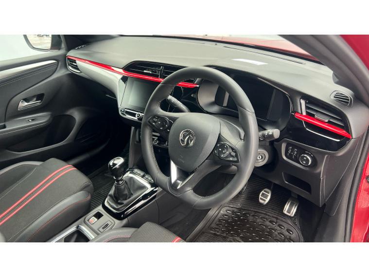 Vauxhall Corsa 1.2 Turbo GS 5dr Petrol Hatchback, , Gloucester ford have this Vauxhall Corsa 1.2 Turbo GS finished in the metallic Crimson Red. This Corsa GS in striking Crimson Red is a car that blends modern style, energetic performance, and everyday practicality into an exceptionally appealing package. From the moment you see it, the bold Crimson Red finish catches the eye with its vibrant, confident character. Paired with sleek 17-inch alloy wheels, the car has an unmistakably sporty presence on the road, giving it a premium and dynamic look that stands out from the crowd. The 1.2 Turbo engine delivers an impressive balance of efficiency and performance. It responds eagerly to acceleration, making city driving smooth and enjoyable while still offering plenty of power for motorway journeys. Despite its spirited performance, it remains economical, making it an excellent choice for both commuting and weekend adventures. The handling is precise and agile, giving the driver a genuine sense of control and confidence in all conditions. The GS trim enhances the experience further with a range of thoughtful features and sporty design touches. The interior is modern, comfortable, and intuitively laid out, offering supportive seating and high-quality materials throughout. The infotainment system is easy to use, keeping you connected with seamless smartphone integration, clear displays, and practical controls. What truly sets this Corsa apart is how well it blends style with substance. The sporty exterior, highlighted by the red finish and bold alloys, is matched by an interior and driving experience that feels refined and engaging. Its a car that looks fantastic, performs brilliantly, and remains practical for everyday life. Overall, the Vauxhall Corsa Hatchback 1.2 Turbo GS in Crimson Red is a standout choice for anyone seeking a stylish, efficient, and fun-to-drive hatchback that delivers exceptional value and undeniable curb appeal.