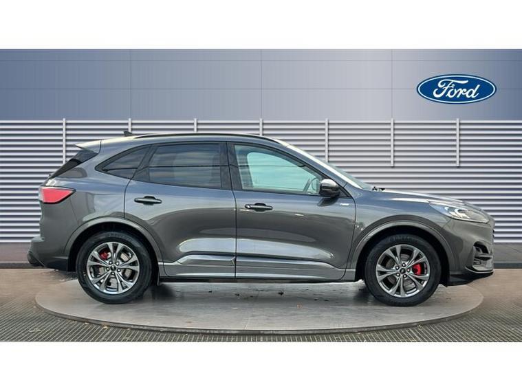 Ford Kuga 2.5 FHEV ST-Line Edition 5dr CVT Hybrid Estate, , Gloucester Ford have this Ford Kuga 2.5 FHEV ST-Line Edition finished in the premium Magnetic Grey. This Ford Kuga FHEV ST-Line Edition in striking Magnetic Grey is a standout SUV that blends sporty style, everyday practicality, and modern hybrid technology in a way few rivals can match. This self-charging full hybrid brings together efficient performance and smooth automatic driving, making it a pleasure to pilot whether youre navigating city streets or heading out on a weekend adventure. As part of the desirable ST-Line range, it features dynamic exterior styling with bold lines, black roof rails, and an unmistakably athletic stance that turns heads wherever you go. Step inside and youre welcomed by a thoughtfully designed cabin that combines comfort with advanced technology. The SYNC 3 infotainment system with its intuitive 8-inch touchscreen keeps you fully connected and entertained, supporting Apple CarPlay, Android Auto, navigation, and hands-free calling with voice control, all while keeping the driver focused on the road ahead.