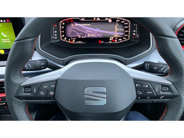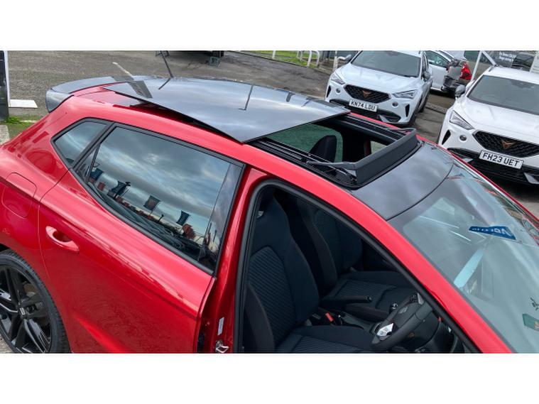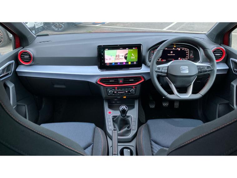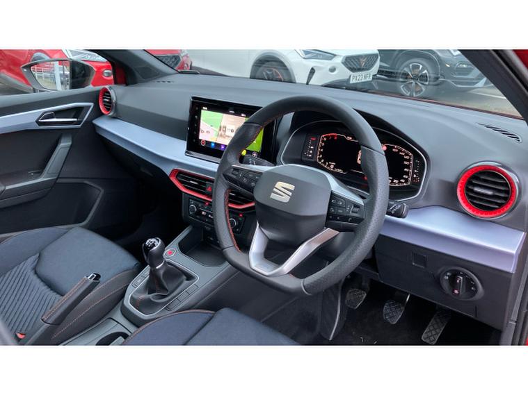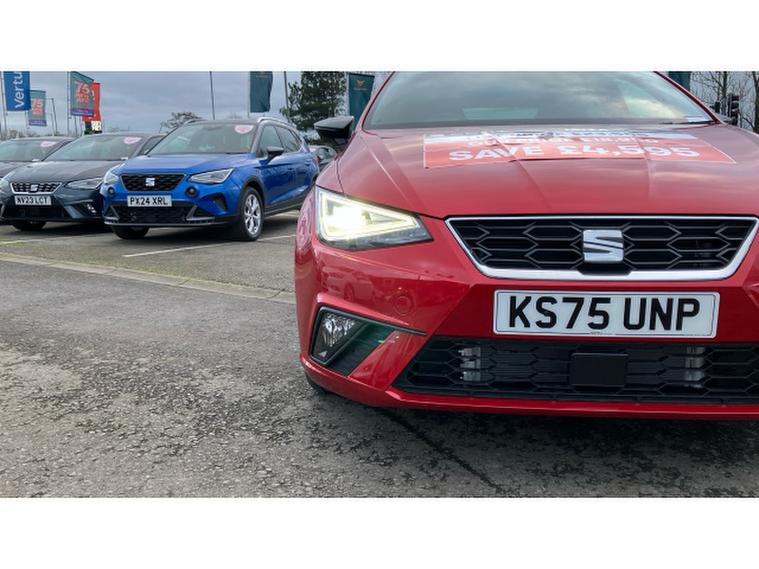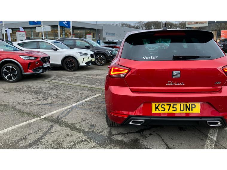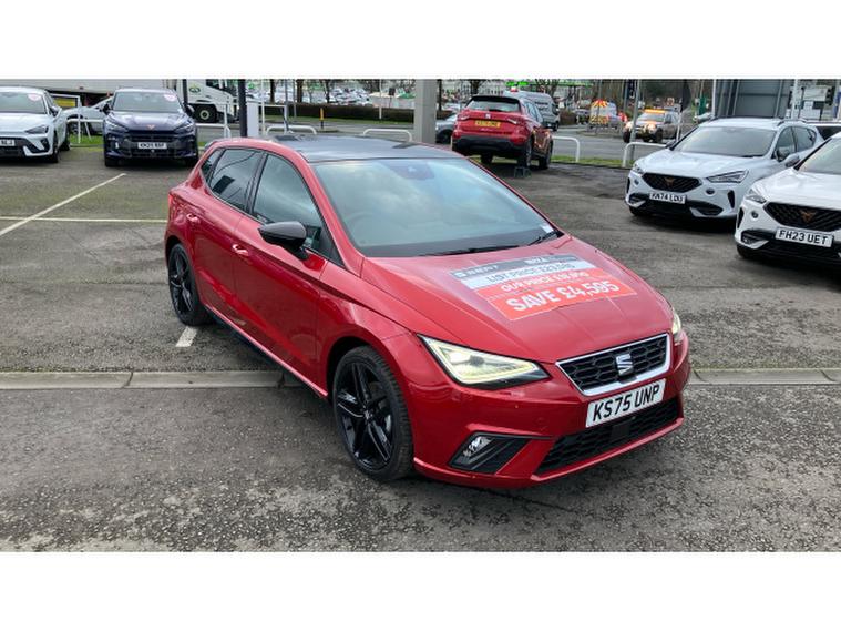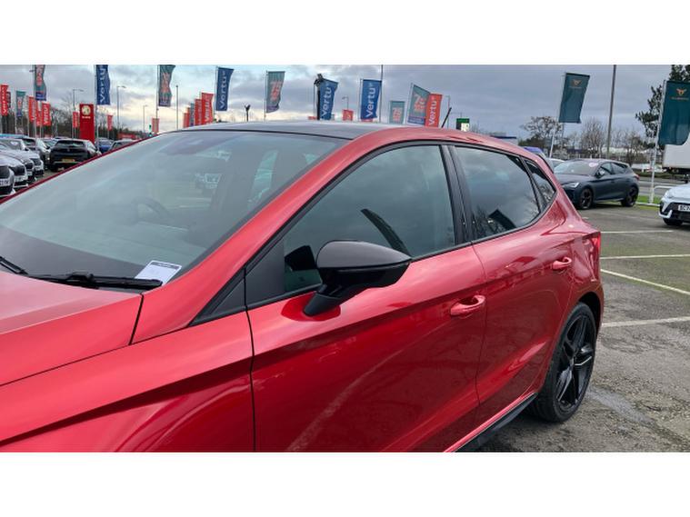 SEAT Ibiza 1.0 TSI 115 FR Black Edition 5dr Petrol Hatchback, , The SEAT Ibiza has always been one of the sharpest drives in the supermini class, and in FR Black Edition form it feels particularly on point. Power comes from the excellent 1.0 TSI engine with 115PS a small-capacity turbo unit that punches well above its weight, delivering brisk performance with impressive refinement and everyday efficiency. The FR Black Edition adds a welcome dose of attitude: contrasting black alloy wheels, dark exterior accents and a cabin that feels sporty without tipping into gimmickry. Registered in November 2025 and showing delivery miles only, this example is as close to brand new as makes no difference, minus the factory wait. On the road, the Ibiza impresses with precise steering, a well-judged ride and real composure at speed, qualities that mark it out from less engaging rivals. Its practical, stylish and genuinely enjoyable to drive proof that sensible motoring doesnt have to be dull.