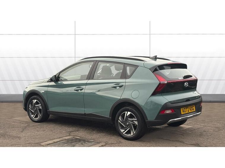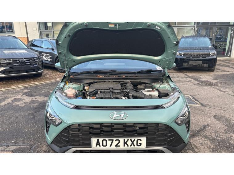 Hyundai BAYON 1.0 TGDi 48V MHEV SE Connect 5dr DCT Petrol Hatchback, , Discover smart hybrid efficiency and modern design with this 2022 Hyundai Bayon 1.0 TGDi 48V MHEV SE Connect DCT, finished in eye-catching Mangrove Green and showing under 3, 000 miles. This extremely low-mileage example benefits from the balance of Hyundai's manufacturer warranty, offering peace of mind and worry-free ownership. The 1.0 TGDi petrol engine is paired with Hyundai's 48V mild hybrid technology and smooth automatic DCT gearbox, delivering responsive performance with excellent fuel efficiency, making it ideal for both town driving and longer journeys.