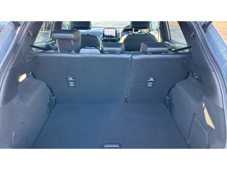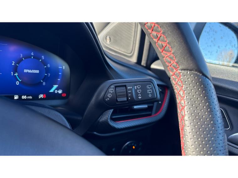 It stands out with unique ST styling, including body kit enhancements, 19 inch alloy wheels, dual chrome exhausts, contrast roof and ST scuff plates.