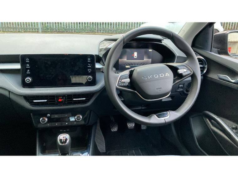 Skoda Fabia 1.0 TSI SE Edition 5dr Petrol Hatchback, , The 2025 koda Fabia Hatchback 1.0 TSI SE Edition 5-door arrives as a thoughtfully engineered small car that punches above its weight its turbocharged 1.0-litre petrol engine (≈, , 116 PS) offers a smooth, responsive drive with 062 mph in roughly 9.7 s and a top speed near 126 mph, while still delivering economy around 5354 mpg (WLTP) and CO₂, , emissions in the region of 119121 g/kmDespite its compact footprint, the Fabia packs practicality: a 380-litre boot and clever storage solutions give room for groceries, luggage or gear and fold-flat rear seats expand load space further.The SE Edition trim brings everyday comfort and convenience with alloy wheels, LED headlights, an 8.25″, , infotainment system with smartphone integration, keyless start, and a leather-trimmed steering wheel delivering a package that balances efficiency, versatility and value for modern urban or suburban motoring.