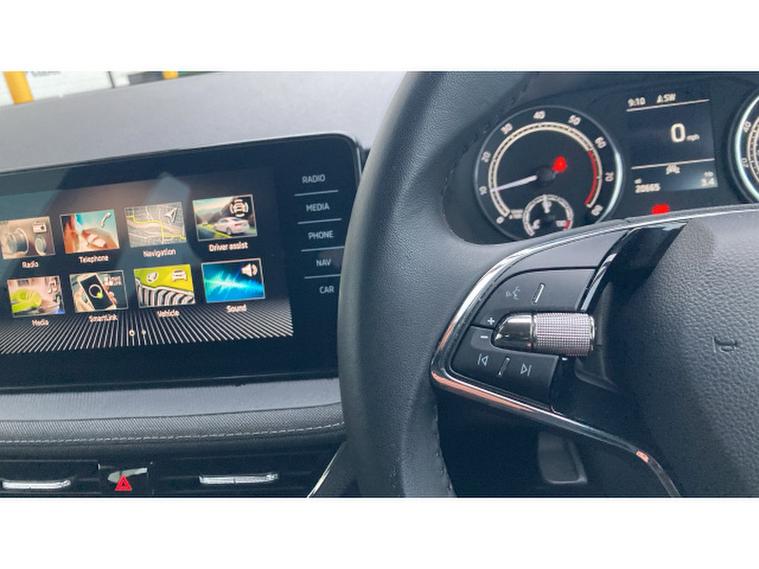 Skoda Fabia 1.0 TSI 110 SE L 5dr Petrol Hatchback, , The 2023 koda Fabia Hatchback 1.0 TSI 110 SE L 5-door quietly impresses as a well-balanced supermini that blends brisk everyday performance with sensible running costs and practicality: its turbocharged 1.0-litre petrol engine develops around 110 PS and about 200 Nm, delivering a lively drive with a 062 mph time near 9.9 s and a top speed around 126 mph, while also returning strong fuel economy (about 61.4 mpg combined and around 105106 g/km CO₂, , ) that keeps motoring costs in check.Inside, the Fabias 380-litre boot and adaptable rear seats give the compact hatchback real everyday versatility, whether for shopping, luggage or weekend gear an unusually generous cargo area for the classThe SE L trim adds reassuring comfort and convenience with LED headlights, cruise control, Bluetooth connectivity, Apple CarPlay/Android Auto and parking sensors, making it a well-equipped choice for urban life, commuters or first-time buyers seeking a fuss-free, economical and genuinely practical everyday car.