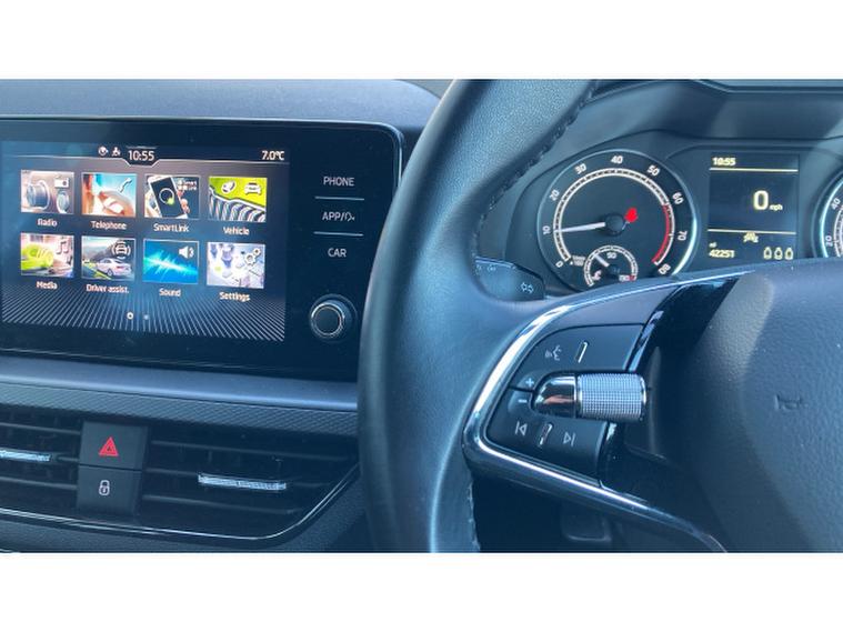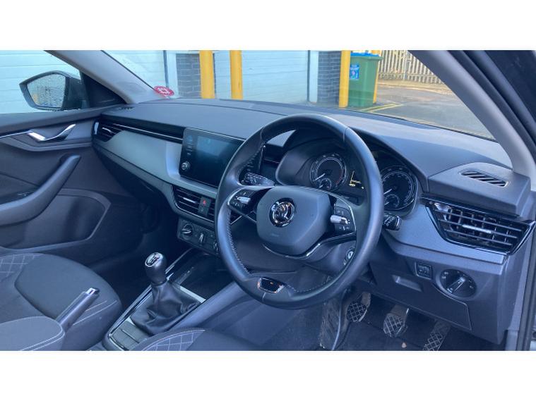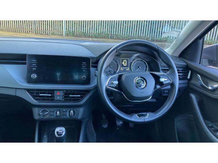 Skoda Scala 1.0 TSI 110 SE 5dr Petrol Hatchback, , The 2022 koda Scala 1.0 TSI 110 SE 5-door stands out in the compact hatchback class by marrying everyday efficiency with spacious practicality and smart design: its 1.0-litre TSI petrol engine offers brisk, economical performance with official combined economy figures around the mid-50 mpg mark and smooth, responsive driving suitable for urban commuting or longer journeys.What truly sets the Scala apart is its interior space adults enjoy generous legroom front and rear, while the class-leading 467-litre boot and a host of clever storage cubbies make light work of luggage, shopping or weekend gear, often outclassing rivals like the Ford Focus or VW Golf on cargo capacity.The SE trim brings essential features such as cruise control, Bluetooth connectivity, satellite navigation and LED headlights as standard, enhancing comfort, convenience and safety in daily driving.All told, the Scala delivers a compelling mix of roomy practicality, sensible running costs and everyday usability that belies its compact footprint.