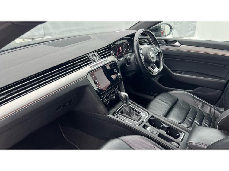 Volkswagen Arteon 2.0 TDI R-Line 5dr DSG Diesel Hatchback, , Gloucester Ford have this low mileage for its age Volkswagen Arteon Diesel Fastback 2.0 TDI R-Line 5dr DSG finished in the metallic Deep Black. This Arteon 2.0 TDI R-Line Fastback DSG in Deep Black combines elegance, performance, and practicality into a truly premium driving experience. The 2.0-litre TDI diesel engine delivers strong, torquey performance, powerful enough for brisk overtaking and relaxed motorway cruising alike, while maintaining efficiency and long-distance comfort. The DSG automatic gearbox ensures smooth, seamless gear changes, making the ride refined and effortless whether youre navigating urban streets or travelling on long journeys. Visually, the Deep Black finish gives the Arteon a sleek, sophisticated presence. The fastback design, with its sweeping roofline and sculpted body, exudes class, ranging from subtle understated elegance to dynamic sportiness. On the road, the smooth lines and solid build quality make a strong impression, this is a car that feels both premium and purposeful. Inside, the R-Line trim elevates the cabin to a refined, driver-focused environment. High-quality materials, tasteful design touches, and attention to comfort make the Arteon feel much like a luxury saloon. The seating is supportive and comfortable for driver and passengers, suitable for daily commuting or longer journeys. The heated seats are a welcome luxury, especially on colder days, enhancing comfort for all occupants and adding a layer of sophistication to every drive. When it comes to manoeuvring and parking, the combination of front and rear parking sensors brings tremendous convenience. Whether navigating tight urban parking spots, reversing into a driveway, or squeezing into a compact city space, the sensors assist with precise parking, enhancing both safety and ease of use. Overall, the Volkswagen Arteon 2.0 TDI R-Line Fastback DSG in Deep Black is a superb choice for those who want a refined, stylish car that doesnt compromise on performance or practicality.
