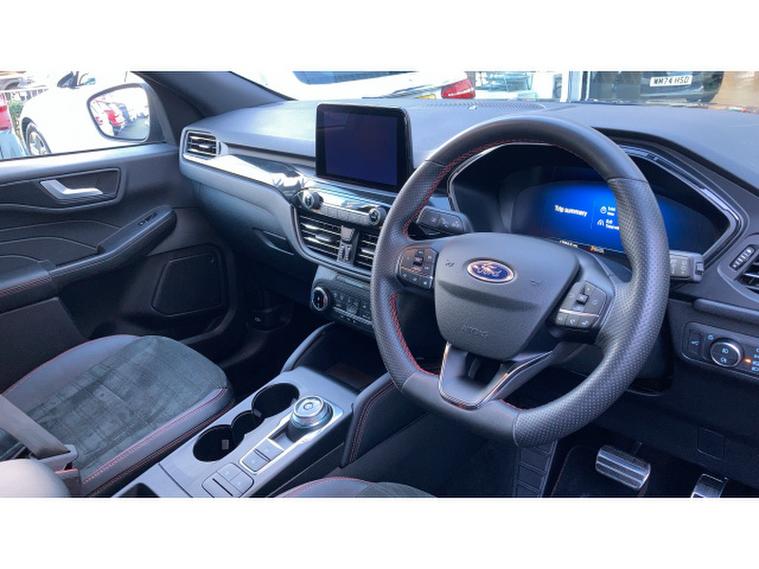 Ford Kuga 2.5 FHEV ST-Line Edition 5dr CVT Hybrid Estate, , Introducing this Ford Kuga Estate FHEV ST-Line Edition, a premium and efficient SUV that combines cutting-edge hybrid technology, sporty design, and practical versatility for modern driving. Powered by Fords 2.5-litre Full Hybrid Electric Vehicle (FHEV) powertrain, it delivers smooth, responsive performance with excellent fuel efficiency and reduced emissions, offering an environmentally conscious yet dynamic driving experience. The ST-Line trim enhances the Kugas sporty appeal with stylish alloy wheels, LED headlights, body-coloured exterior accents, and aerodynamic styling, giving it a confident and contemporary presence on the road. Inside, the cabin is crafted with comfort and convenience in mind, featuring high-quality materials, supportive seats, and a driver-focused layout. Technology is at the forefront with a touchscreen infotainment system including integrated navigation, Apple CarPlay, Android Auto, Bluetooth connectivity, and DAB radio, ensuring connectivity and entertainment throughout every journey. Practicality is maximised with generous boot space, flexible seating, and clever storage solutions, while advanced safety features such as lane-keeping assist, pre-collision assist, blind-spot monitoring, and rear parking sensors provide peace of mind. Presented in excellent condition, this Ford Kuga ST-Line Edition 5dr CVT combines style, efficiency, and modern technology in a versatile SUV package.