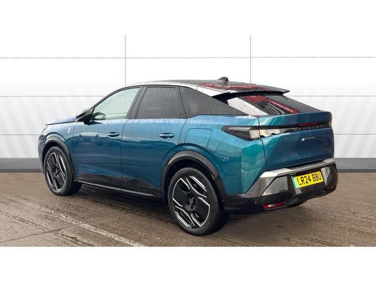 Peugeot 3008 157kW GT 73kWh 5dr Auto Electric Estate, , The 2024 Peugeot E-3008 Electric Estate 157kW GT 73kWh finished in metallic blue is a striking and sophisticated electric estate that perfectly blends dynamic design, advanced technology and practical versatility. Its bold, modern lines and elegant proportions are heightened by the shimmering metallic blue paint, giving the vehicle a sleek and contemporary presence on the road. The GT specification adds sporty touches such as distinctive alloy wheels, sharp LED lighting signatures and subtle styling cues that reflect the cars premium positioning.