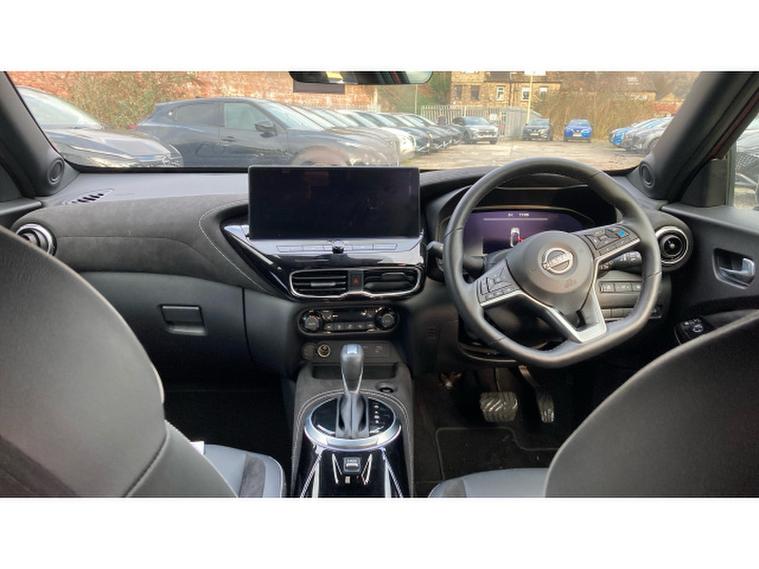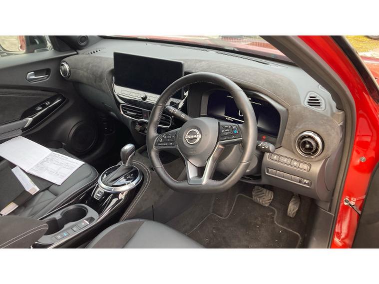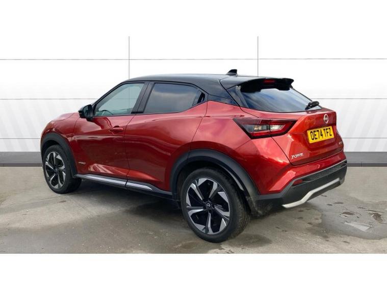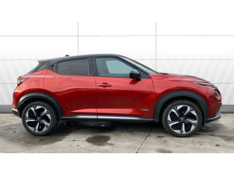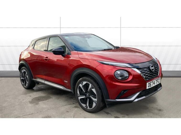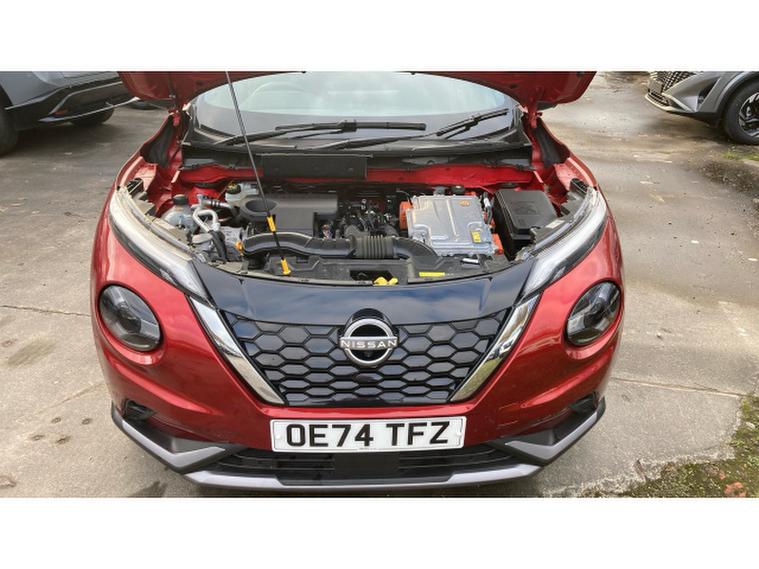 Nissan Juke 1.6 Hybrid Tekna+ 5dr Auto Hybrid Hatchback, , The 2024 Nissan Juke 1.6 Hybrid Tekna+ is the premium, eco-conscious flagship of the Juke range, offering a sophisticated 143 bhp full-hybrid powertrain that excels in urban environments. This top-of-the-line model is instantly recognisable by its two-tone metallic paint, signature 19-inch Aero alloy wheels, and a redesigned interior that received a significant technology boost for 2024, now featuring a massive 12.3-inch touchscreen and matching digital drivers display. As a Tekna+, it prioritises luxury with midnight black leather and Alcantara seats, a heated steering wheel, and the immersive Bose Personal Plus audio system with speakers built directly into the front headrests. The drive is effortless thanks to the multi-modal automatic gearbox and e-Pedal Step technology, which allows for smooth deceleration while harvesting energy to achieve a combined 58.9 mpg. Packed with Nissans full ProPilot safety suiteincluding a 360 camera and Intelligent Cruise Controlthe Tekna+ offers a high-fashion, high-tech experience without compromising on the Juke's iconic, bold character.