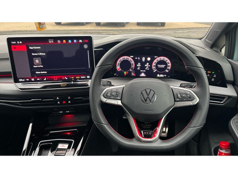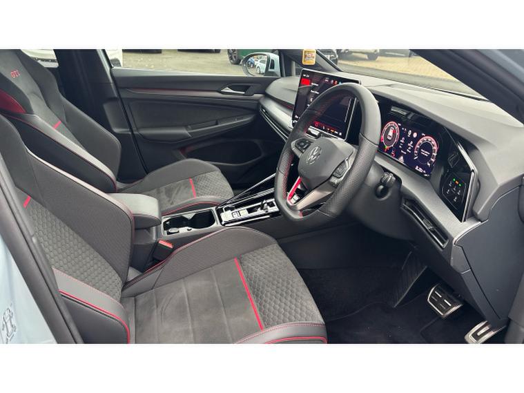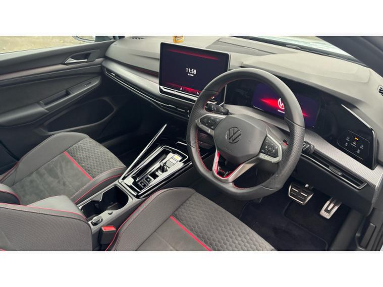 The GTI Clubsport specification sets it apart visually and dynamically, featuring distinctive Clubsport styling, sports suspension, larger alloy wheels and performance-focused details throughout. Inside, the cabin is unmistakably GTI, with sports seats, red stitching, a flat-bottomed steering wheel and a driver-focused layout that blends comfort with motorsport-inspired design.