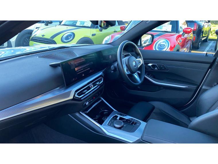 BMW 3 Series 320i M Sport 4dr Step Auto Petrol Saloon, , Experience the perfect blend of performance, comfort and style with this stunning BMW 320i M Sport Saloon. Finished in crisp Alpine White Non-Metallic, it delivers a clean, athletic presence that perfectly complements BMW's iconic M Sport design. Inside, the Alcantara/Sensatec Black upholstery with striking blue stitching creates a premium, sporty cabin that feels as good as it looks, while the 18 inch alloy wheels complete the dynamic stance.
