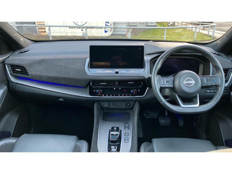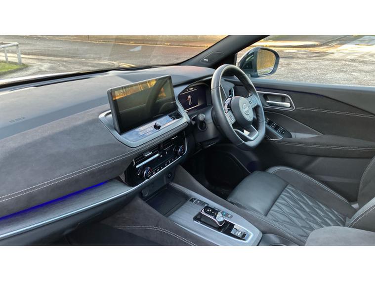 Nissan Qashqai 1.5 E-Power Tekna+ 5dr Auto Hybrid Hatchback, , For sale at Vertu Nissan Glasgow Central is an exceptional Nissan Qashqai Hatchback 1.5 E-Power Tekna+ 5dr Auto with just 8, 343 miles, first registered on 09/09/2024. This highly desirable compact SUV combines cutting-edge e-Power hybrid technology with stylish design and a premium specification, making it an ideal choice for those seeking efficiency, comfort, and modern features. The Tekna+ trim comes generously equipped with 20″, alloy wheels, panoramic glass roof, NissanConnect touchscreen with smartphone integration, DAB radio, dual-zone climate control, adaptive cruise control, heated leather seats, keyless entry, and rear parking sensors, providing a luxurious and connected driving experience.