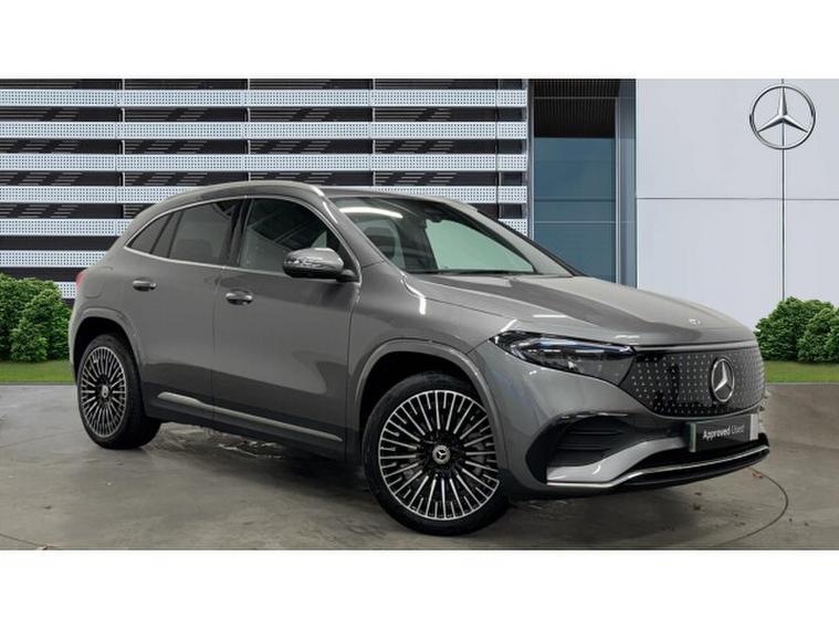 A 2025 Mercedes Benz EQA 250+ AMG Line (Premium), an electric vehicle designed for modern driving. Access the car using KEYLESS GO giving you access without the use of a key and once inside you are greeted by these comfortable seats which are HEATED SEATS. The MBUX SAT NAV screen is ideal for displaying the ANDRIOD AUTO/APPLE CAR PLAY so that you can use your favourite apps like SPOTIFY and WIRELESS CHARGING to keep your phone topped up with charge. PARKNIG PACK With 360 CAMERA is ideal for getting into those tight spaces. BLIND SPOT ASSIST and LANE KEEPING ASSIST is standard for keeping you safe on the roads. Finished in MOUNTAIN GREY METALLIC PAINT and these stunning 20" ALLOYS gives this EQA strong kerb appeal.