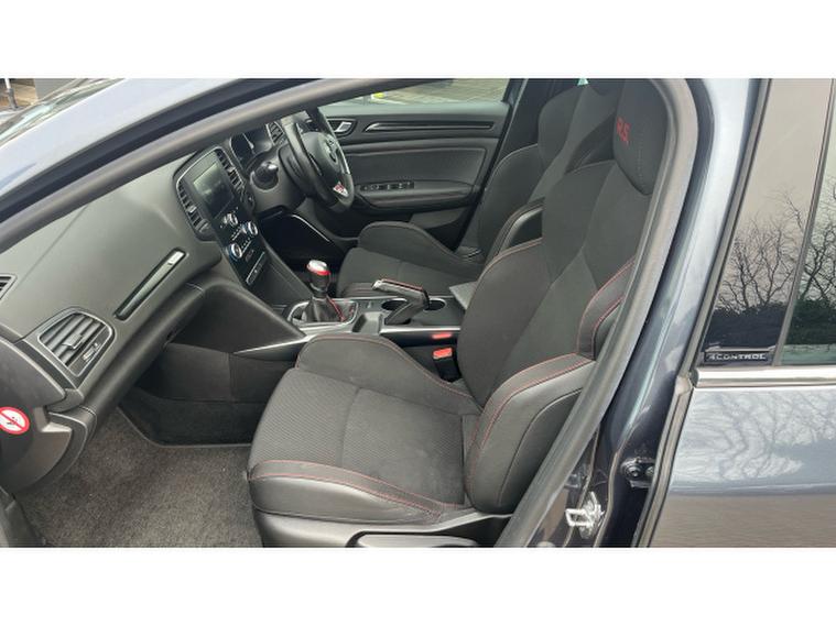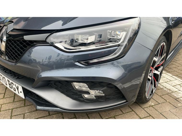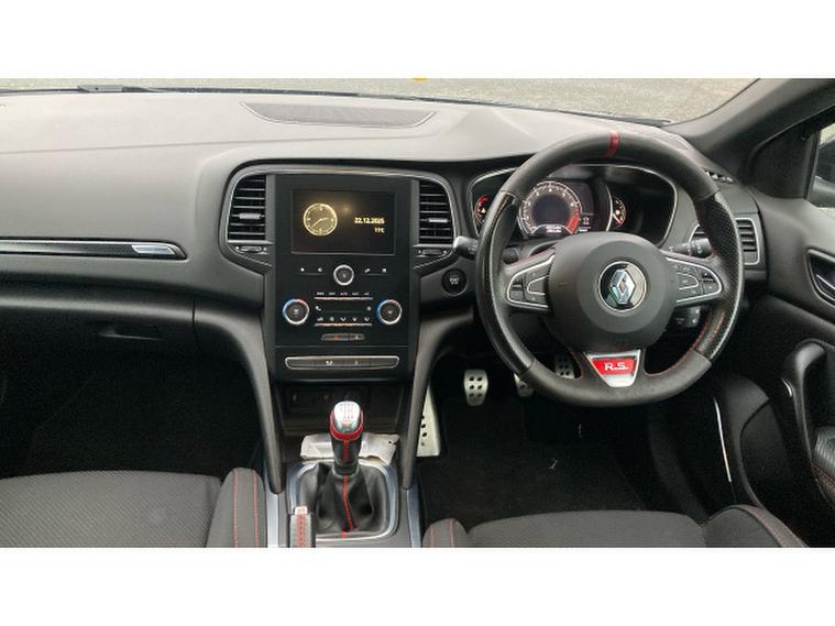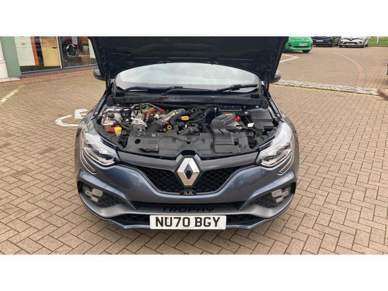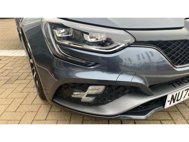 Renault Megane R.S. 1.8 300 Trophy 5dr Petrol Hatchback, , The Renault Megane RS will be a very appealing prospect for the UKs legion of hot hatch fans thanks to its theatrical looks, thrill-a-minute handling, soul-stirring soundtrack and affordable running costs. It cant ultimately match the very best-in-class for performance or dynamic polish, while only the most dedicated hot hatch aficionado will be able to put up with the raw ride delivered by the optional Cup chassis, which is standard on the top-of-the-range Trophy model. Theres still a lot to like, though, and if you do end up opting for the RS, youre unlikely to be disappointed. The regular Megane is a fairly flamboyant-looking car in its own right, so its no surprise that the styling of the full-fat hot hatch version is fairly in-your-face. The C-shaped all-LED headlamps are complemented by chequered flag-like designs for the front foglamps, while the single exhaust mounted centrally in the rear air diffuser makes the back end look more theatrical. The obligatory spoilers and gaping air intakes are all present and correct, as are 18-inch alloys that can be upgraded to 19s as an optional extra and come as standard on the top-end Trophy model. The standard RS comes with a reasonable amount of standard kit, which includes cruise control, two-zone climate control, hands-free locking, four electric windows, rear parking sensors and the 7.0-inch touchscreen infotainment system that brings together sat-nav, Bluetooth, DAB radio and smartphone integration. A few more bits and bobs are available on the options list, and most are reasonably priced. These include the upgraded infotainment system and the Cup Chassis Pack, as well as an opening sunroof, a rear parking camera and a suede-effect steering wheel. The Trophy model gets the Cup Chassis Pack as standard, as well as the RS Monitor (software that can display telemetry from the engine and steering, laptimes and various other motorsporty data).