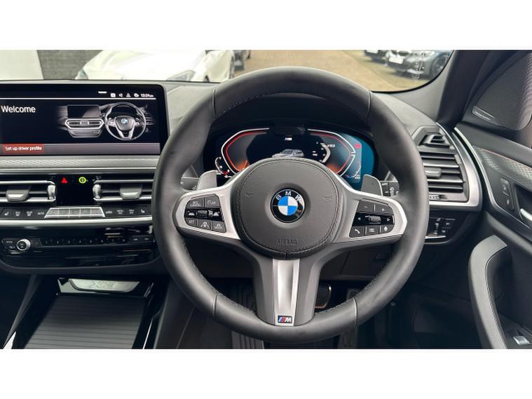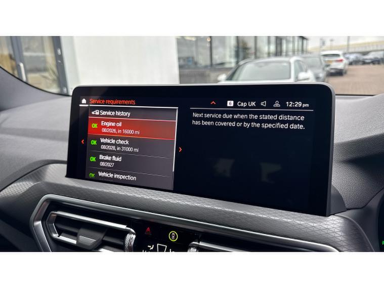 This X3 comes equipped with an impressive list of enhanced features that elevate every journey. Adaptive Suspension and Mild Hybrid Technology deliver smooth, responsive performance, while the Comfort Plus and M Sport Pro packages add an extra layer of luxury and sporting character. M Sport brakes, Acoustic Glass and High-gloss Shadowline styling sharpen both feel and appearance. Practical convenience comes through Comfort Access, folding wing mirrors and a larger fuel tank, while inside, the heated steering wheel, electric memory seats, heated sport seats, ambient lighting and sun protection glass create a warm, premium environment. Visibility and safety are supported by Adaptive LED Headlights, High-Beam Assistant, Driving Assistant and Parking Assistant, with Live Cockpit Professional providing a crisp and modern digital driving experience.