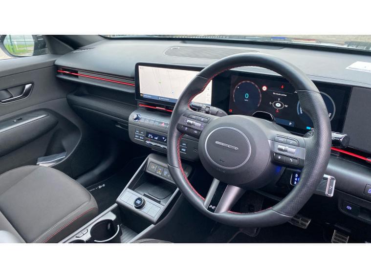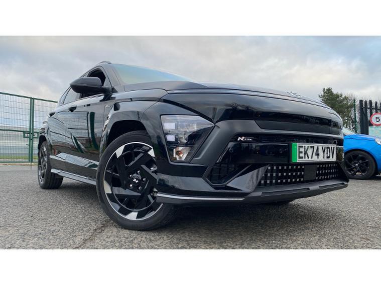 Hyundai KONA 160kW N Line 65kWh 5dr Auto Electric Hatchback, , The Hyundai KONA Electric 160kW N Line 65kWh 5dr Auto is a stylish and performance-inspired electric hatchback that delivers an exciting yet efficient driving experience. Finished in sleek black and registered on a 24/74 plate, this low-mileage example has covered just 9, 338 miles, making it an excellent opportunity to own a nearly new electric vehicle. The powerful 160kW electric motor provides instant acceleration and smooth, quiet performance, while the 65kWh battery offers an impressive maximum range of up to 282 miles on a full charge, ideal for everyday driving and longer journeys alike. The sporty N Line specification enhances the KONAs bold design with distinctive styling touches and a premium interior that blends comfort with a dynamic feel. Inside, youll find advanced infotainment, digital displays, and a wide range of driver assistance features designed to keep you connected and confident on the road. With an automatic transmission and compact hatchback proportions, the KONA Electric is easy to drive and manoeuvre, especially in urban environments. Offering zero tailpipe emissions and low running costs, this KONA Electric is available now at Hyundai Peterlee and ready to drive away.