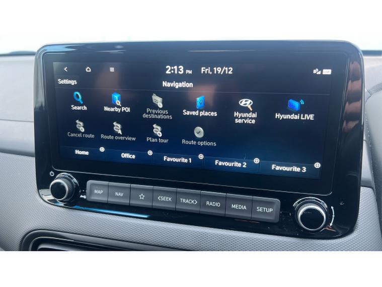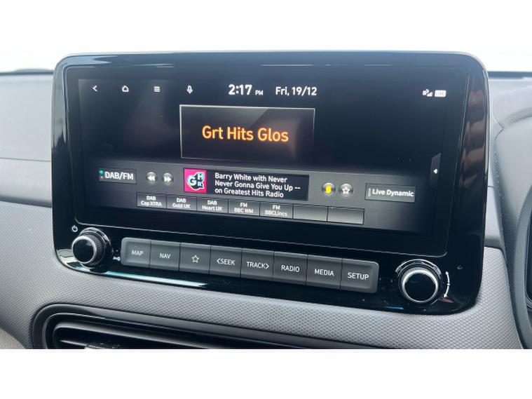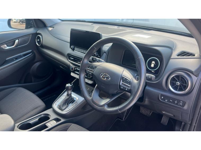 Hyundai KONA 1.6 GDi Hybrid Premium 5dr DCT Hybrid Hatchback, , Gloucester Ford have this 1 owner from new Hyundai Kona 1.6 GDi Hybrid Premium 5dr DCT finished in the metallic Abyss Black. This Kona 1.6 GDi Hybrid Premium DCT in sleek Abyss Black is a standout compact SUV that brings together efficiency, comfort, and modern technology in an attractive, refined package. Powered by a hybrid drivetrain, the 1.6 GDi hybrid combines fuel-saving economy with smooth and responsive performance, ideal for both city commuting and long-distance journeys. The seamless DCT (dual-clutch transmission) enhances the driving dynamics, delivering effortless gear changes that help you get the most out of the hybrid system, whether accelerating onto a motorway or cruising through town. Step inside, and the Premium trim welcomes you with a refined, well-appointed interior. The cabin feels spacious and thoughtfully laid out, with comfortable seating and quality finishes throughout. Particularly on cold mornings or during winter drives, the heated seats add a touch of luxury, warming up quickly and making every journey more pleasant for both driver and front passenger. Parking and manoeuvring are remarkably easy thanks to the combination of front and rear parking sensors and a rear-view camera, giving you superb visibility and peace of mind. Whether youre squeezing into a tight urban parking bay or reversing out of a driveway, these smart aids help you avoid bumps and scrapes and make even challenging parking situations feel effortless. The exterior styling of the Kona in Abyss Black adds a sophisticated, bold edge, the dark finish accentuates its clean lines and muscular stance, giving the vehicle an upscale, contemporary look. On the road, the hybrid Kona balances practicality, performance, and refinement. Altogether, the Hyundai Kona 1.6 GDi Hybrid Premium DCT is a genuinely compelling choice in the compact SUV segment: efficient yet dynamic, practical yet premium.