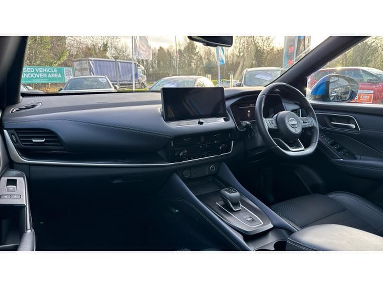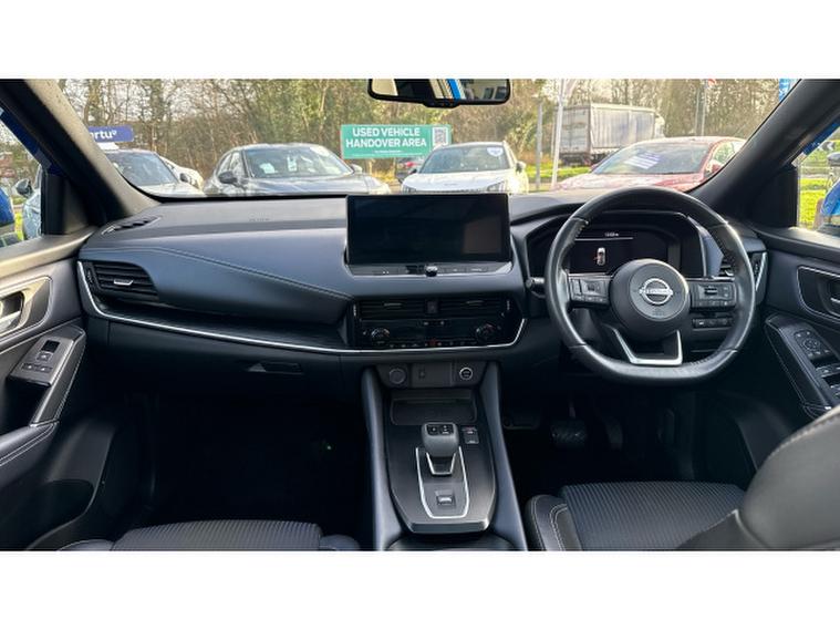 The Blue finish highlights the Qashqais bold and modern exterior, accentuating its sculpted lines and confident stance. Its compact yet commanding presence ensures it handles city streets with ease while remaining practical for longer journeys. The panoramic sunroof floods the cabin with natural light, creating an airy, spacious feel and enhancing the sense of luxury for all passengers.