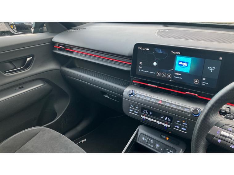 Hyundai KONA 160kW N Line S 65kWh 5dr Auto Electric Hatchback, , TOP OF THE RANGE - REAR CAMERA, DAB, BLUETOOTH, SAT NAV. This 2024 Hyundai Kona Electric N Line S (65kWh) offers a spacious, stylish, and tech-packed electric experience with excellent range, a comfortable ride, and attractive sporty styling, featuring smart tech like OTA updates, a roomy flat-floor cabin, sustainable materials, and practical features like a flat-folding rear seat, making it a strong, efficient all-rounder.