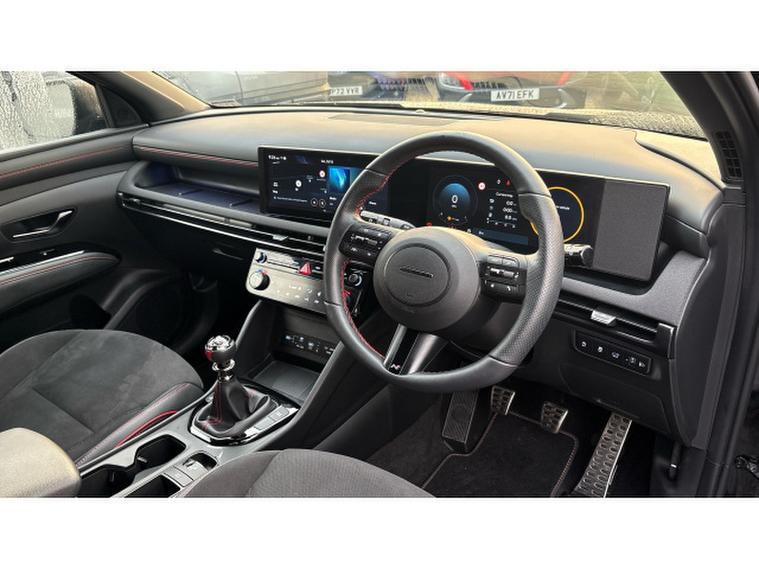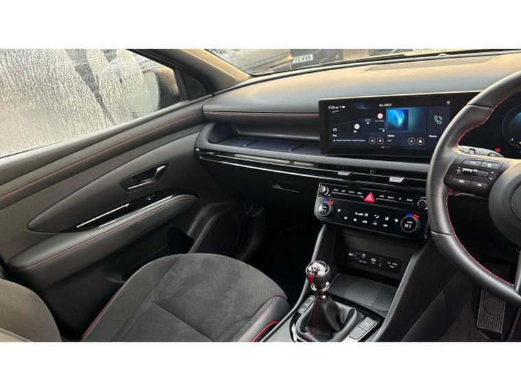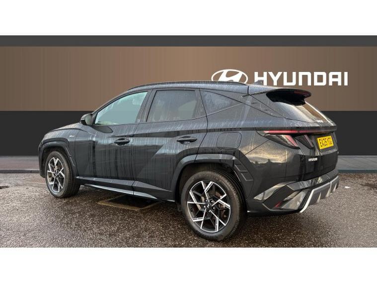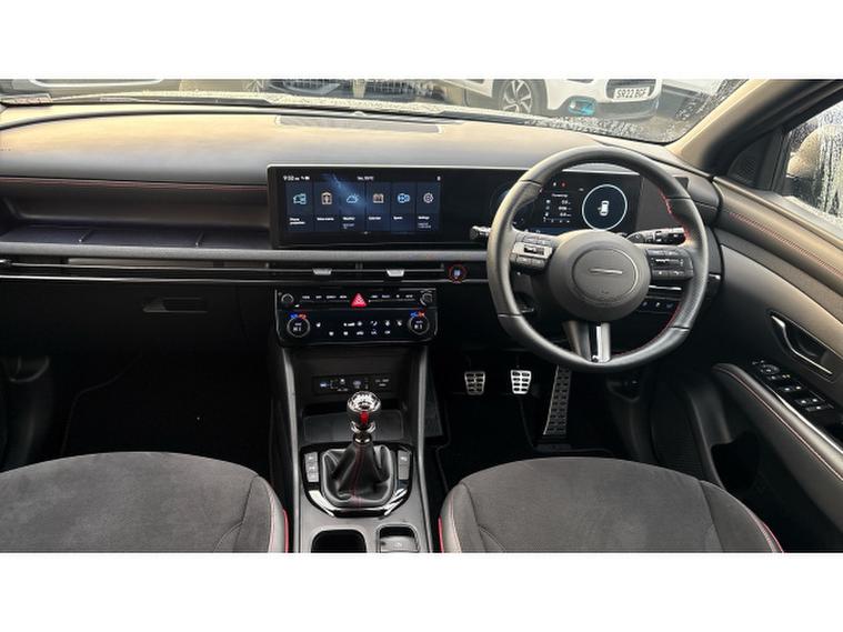 Hyundai TUCSON 1.6T N Line 5dr Petrol Estate, , This Hyundai Tucson Estate 1.6T N Line, finished in striking Abyss Black and showing just over 6, 500 miles, combines dynamic performance, sporty styling and premium specification in a versatile SUV package. Powered by a 1.6 litre turbocharged petrol engine paired with a smooth automatic transmission, it delivers responsive performance with confident handling and refined everyday drivability. The N Line specification adds distinctive sporty design touches inside and out, including bold body styling, larger alloy wheels, alloy sports pedals and unique interior accents for a more engaging and athletic feel. The well equipped cabin includes a touchscreen infotainment system with Apple CarPlay and Android Auto, digital instrument cluster, adaptive cruise control, heated front seats, dual zone climate control and a comprehensive suite of advanced safety features. With its combination of striking looks, modern technology and low mileage, this Tucson N Line represents an exciting and stylish choice in the compact SUV segment. A personalised video presentation is available on request.
