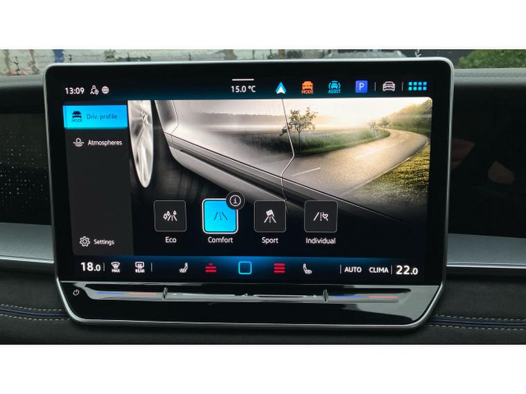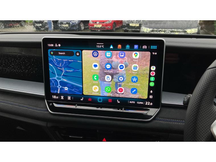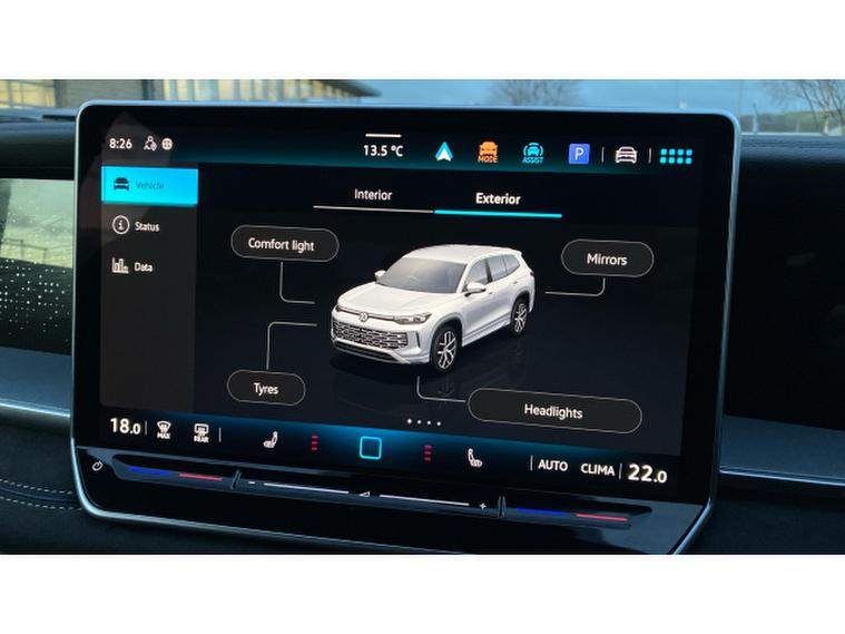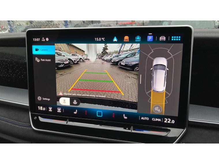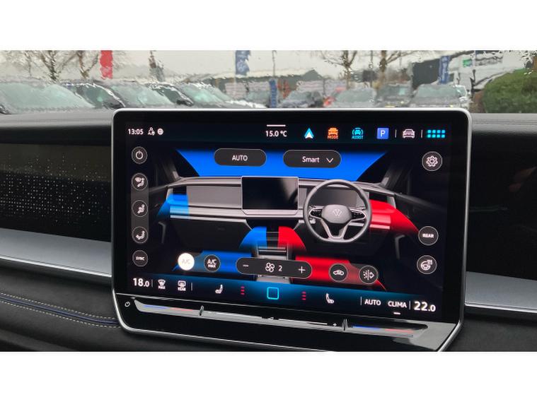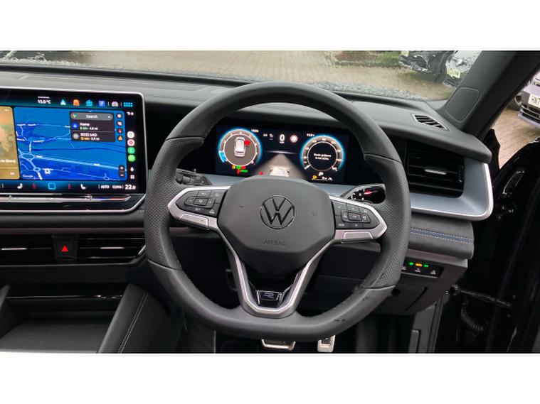 As standard it comes with diamond cut alloy wheels, Intelligent Matrix dynamic LED head and tail lights, interactive touch screen media and system control with a digital drivers cockpit, electronic smart heating controls with tri-zone climate control, satellite navigation, Apple car Play, Android Auto, DAB radio, Bluetooth, wireless inductive phone charging, park assist with front & rear parking sensors, heated steering wheel, electric heated massaging sports seats, keyless entry, adaptive cruise control with lane assist, and travel assist, R-Line sports seats, privacy glass, sports body styling, roof rails, plus so much more.