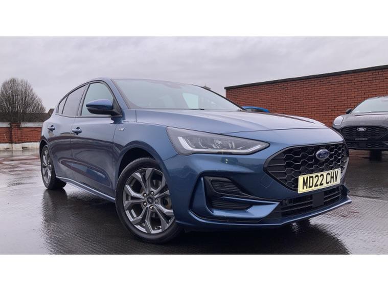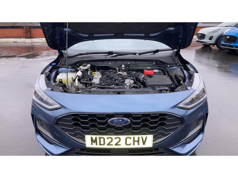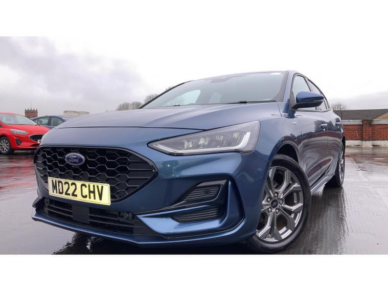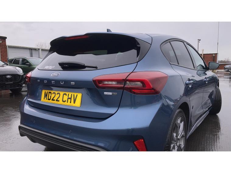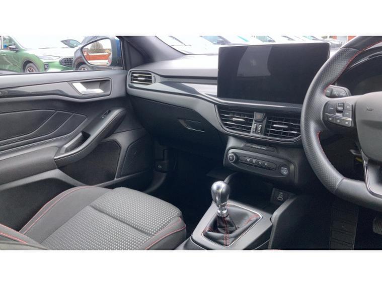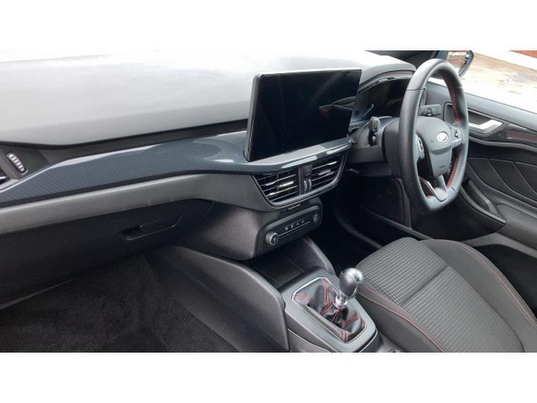 Ford Focus 1.0 EcoBoost Hybrid mHEV 155 ST-Line Edition 5dr Petrol Hatchback, , A dynamic and efficient hatchback that combines sporty styling, advanced mild-hybrid technology, and practical everyday usability. Powered by a 1.0-litre EcoBoost petrol engine with mild-hybrid assistance, this Focus delivers responsive performance, smooth acceleration, and excellent fuel economy, making it ideal for both urban driving and longer journeys. The ST-Line Edition trim enhances its athletic appeal with 17-inch alloy wheels, ST-Line body styling, rear spoiler, LED headlights, and distinctive badging, giving the car a bold and confident presence on the road. Inside, the cabin is driver-focused and well-appointed, featuring part-leather sports seats, a leather-trimmed steering wheel, ambient lighting, and high-quality materials throughout. Technology highlights include Fords SYNC 3 infotainment system with an 8-inch touchscreen, satellite navigation, Apple CarPlay, Android Auto, Bluetooth, and DAB radio for seamless connectivity and entertainment. Convenience features such as dual-zone climate control, keyless entry, rear parking sensors, and cruise control enhance usability, while safety is prioritised with multiple airbags, lane-keeping assist, and electronic stability control. Presented in excellent condition with low mileage and a full service history, this Ford Focus ST-Line Edition offers exceptional value.