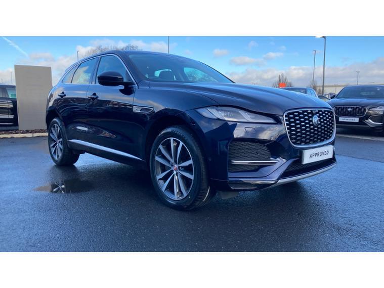 Jaguar F-Pace 2.0 D200 SE 5dr Auto AWD Diesel Estate, , Vertu JLR Bolton are proud to offer this stunning Jaguar F-Pace 2.0 D200 SE finished in Portofino Blue metallic with ebony Taurus leather interior. This two owner car has been immaculately looked after by its former owners and comes with a Full Service History with 2 former services last serviced July 2025 at 32406 miles. This car comes with optional electric deployable towbar, and comes with an impressive standard specification which includes 11.4 inch touchscreen with Pivi Pro Navigation, 3D surround camera, parking sensors, cruise control, dual zone climate control, Apple car play, LED headlights, auto lights and wipers, keyless entry, power tailgate, heated leather seats, Meridian sound system, virtual cockpit, trip computer, Isofix, push button start, heated windscreen blind spot assist, lane departure warning, steering wheel audio controls, DAB radio, Bluetooth, remote central locking, and much more. This car is ready to view, test drive and drive away today and comes as part of the Approved JLR programme which includes 12 months warranty, 12 months roadside assistance, MOT test warranty, 165 multi point inspection as part of purchase