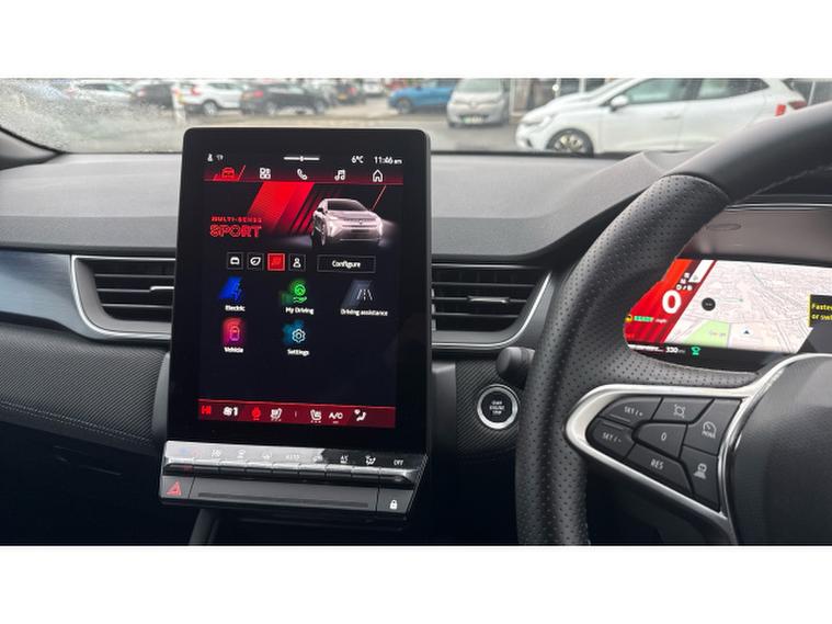 Under the skin, Renaults brilliant 1.6 E-Tech full hybrid system seamlessly blends electric and petrol power, giving you smooth acceleration, impressive fuel economy and whisper-quiet low-speed driving. The automatic gearbox only adds to the relaxed, premium feel. Meanwhile, the Esprit Alpine trim injects a sporting edge with distinctive styling details and a confident, athletic stance.