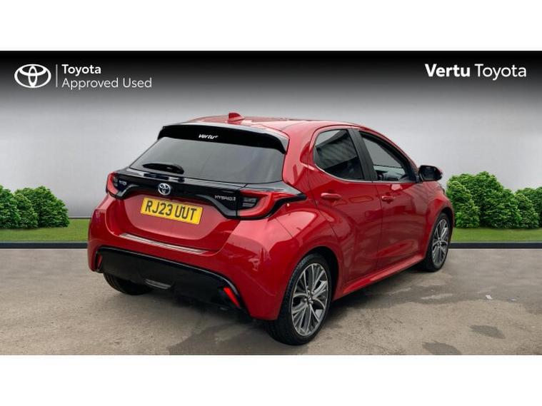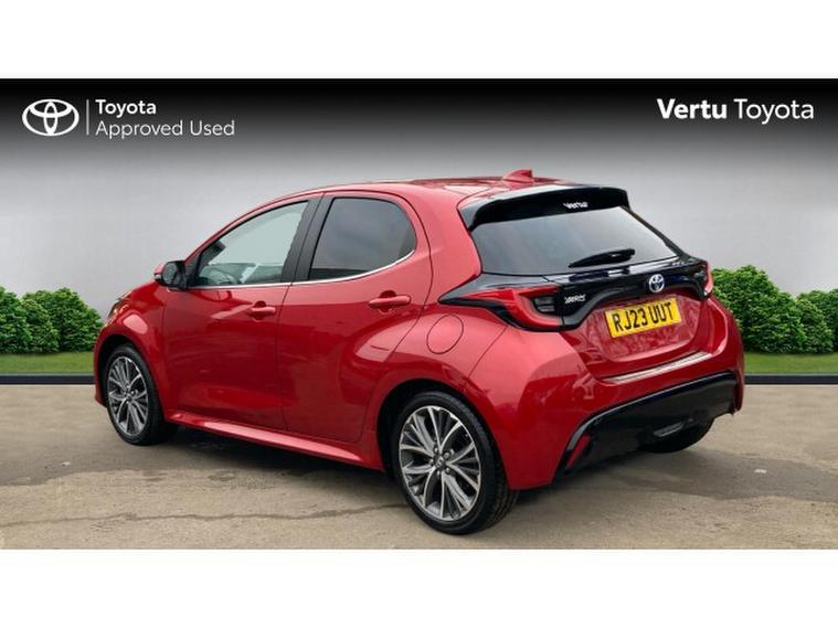 Toyota Yaris 1.5 Hybrid Excel 5dr CVT Hybrid Hatchback, , This 23-plate self-charging hybrid hatchback is finished in eye-catching Scarlet Flare, a colour that manages to look sporty, stylish, and just a little bit cheeky perfect for those who like their car to make a subtle statement without shouting. Compact, confident, and full of personality, its a car that makes even the most mundane journeys a little more enjoyable.