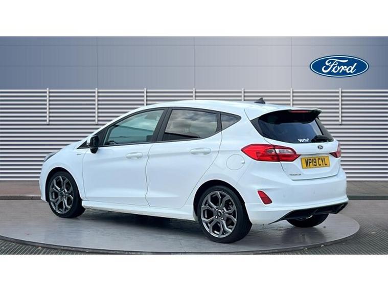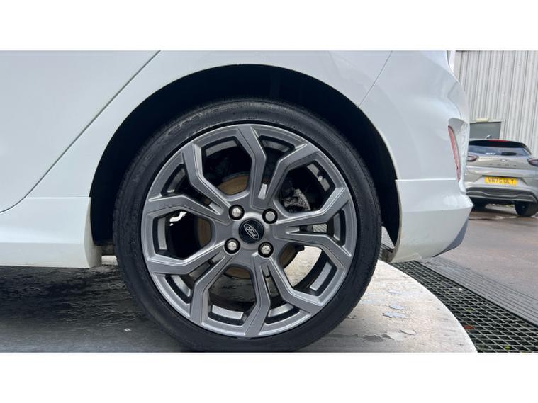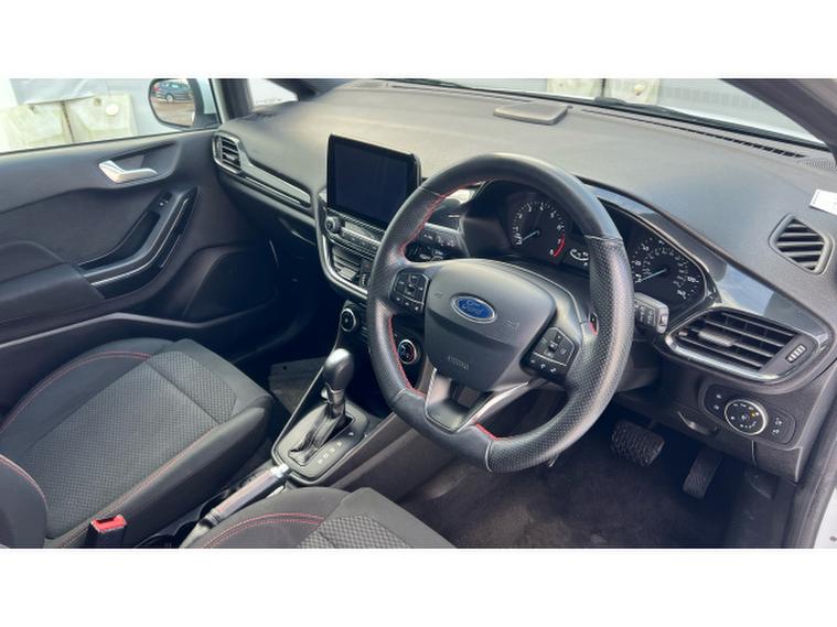 Ford Fiesta 1.0 EcoBoost ST-Line 5dr Auto Petrol Hatchback, , Gloucester Ford have this low mileage for its age Ford Fiesta 1.0 EcoBoost ST-Line 5dr Auto finished in Frozen White. This Fiesta ST-Line 5dr Auto in crisp Frozen White is an exciting blend of sporty style, refined performance, and everyday practicality. From the first glance, the ST-Line styling sets this Fiesta apart with its dynamic body enhancements, bold lines, and athletic stance, giving it an energetic and confident presence on the road thats sure to turn heads. Powered by the responsive 1.0 EcoBoost engine and paired with a smooth automatic transmission, this Fiesta delivers a refined and effortless driving experience. The combination of performance and efficiency makes city driving a breeze while also offering confidence on longer journeys. Its sharp handling and intuitive steering make every twist and turn feel engaging, giving you that classic Fiesta fun-to-drive character in a modern, automatic package. Step inside, and the interior continues to impress with a driver-focused layout, quality finishes, and thoughtful details. The SYNC 3 infotainment system takes centre stage, providing seamless connectivity, easy-to-use navigation, and straightforward access to media and smartphone integration, keeping you connected and entertained wherever you go. Comfort is elevated with practical touches like a heated front screen, which quickly clears frost and condensation on chilly mornings, making each start-up more convenient and stress-free. Rear parking sensors add confidence and ease when manoeuvring into tight spaces, helping you park with precision and peace of mind. Finished in Frozen White, this Fiesta combines sporty aesthetics with everyday appeal. Its a versatile and stylish compact hatch that meets the needs of modern drivers, practical, efficient, connected, and enjoyable to drive. The ST-Line Auto strikes an excellent balance between dynamic performance and everyday usability, making it a truly compelling choice for anyone seeking a fun yet sensible vehicle.