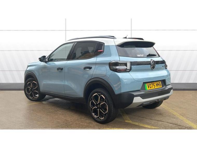 Citroen C3 83kW Max 44kWh 5dr Auto Electric Hatchback, , Discover the 2025 Citroen e-C3 MAX, nearly new electric vehicle ready for immediate delivery. This MAX trim model boasts a 44 kWh battery, offering a maximum range of 201 miles on a full charge. Experience the convenience of rapid charging, with a full charge at home using a 7kW charger taking approximately 5 hours and 33 minutes. For faster top ups, a public charger can take the battery from empty to 80% in just 34 minutes.
