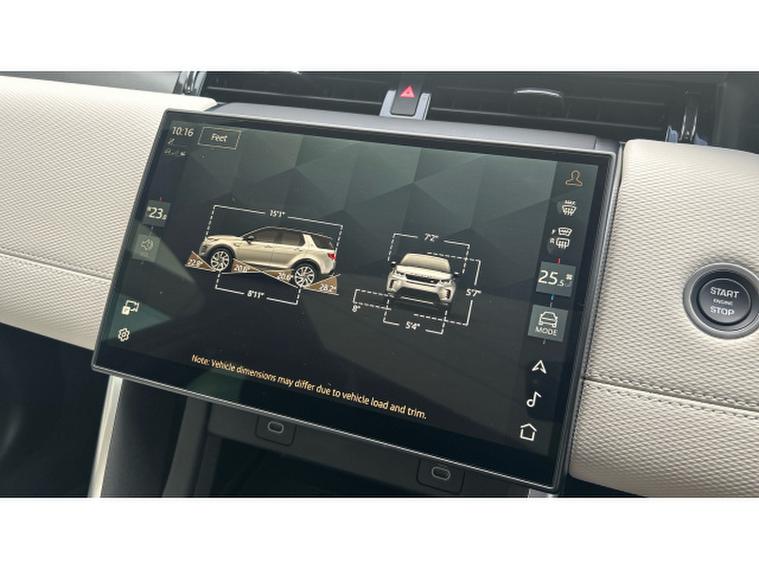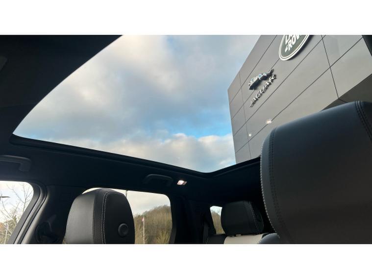 From the outside, the Discovery Sport looks purposeful and confident. The 20 inch Style 5089 gloss black alloy wheels, complemented by black brake calipers, give it a sporty edge, while privacy glass adds a touch of sophistication and extra reassurance for passengers. The fixed panoramic sunroof floods the cabin with natural light, transforming even everyday drives into something special.