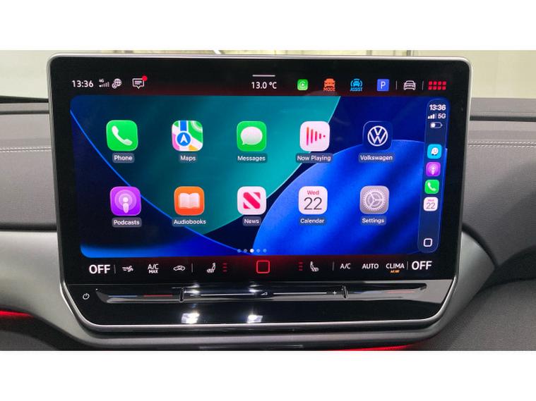 Inside, the cabin is refined and spacious, featuring the Interior Style package in Platinum Grey with ambient lighting in 30 colours and ID.Light. Comfort is assured with heated front seats, a heated multifunction steering wheel, dual-zone Air Care Climatronic and a climate windscreen. The Discover Pro navigation system sits at the heart of the infotainment, while Apple CarPlay and Android Auto keep you seamlessly connected on every journey.