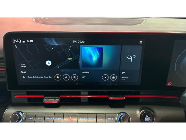 The N Line trim adds standout style with sport-inspired exterior detailing and distinctive alloy wheels, giving the Kona Electric a dynamic and modern presence on the road. Inside, the cabin blends comfort and technology with supportive seats, quality materials and clever layout that make every journey enjoyable.