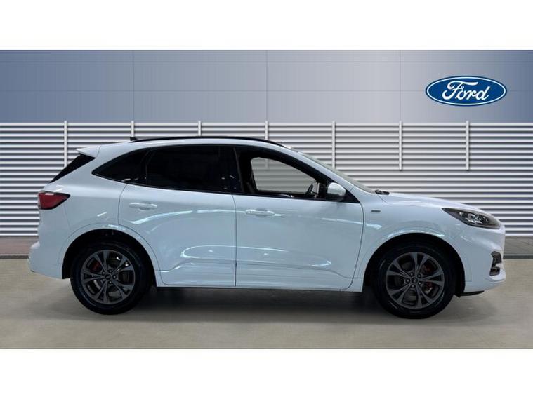 Ford Kuga 1.5 EcoBoost 150 ST-Line Edition 5dr Petrol Estate, , The Ford Kuga Estate 1.5 ST-Line edition is a stylish and practical family car, with the added versatility of the high specification, great looks, comfort, space and a higher driving position. This carefully prepared example has covered 23661 miles and boasts a full-service history. With clean grey half leather upholstery and seats which offer impressive comfort, utilise the cruise control whilst commuting and stay connected and contactable via Bluetooth. Wheel mounted controls allow for a safe and practical experience when driving, with little need to take your eyes off the road. This model is also fitted with front and rear parking sensors and an optical display providing convenience and ease, as well as having the ability to control the temperature via the climate-controlled air conditioning.
