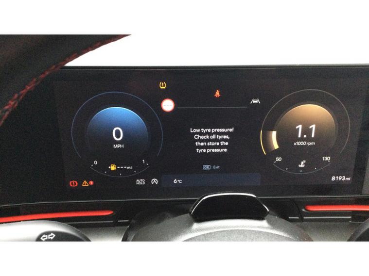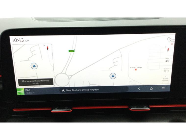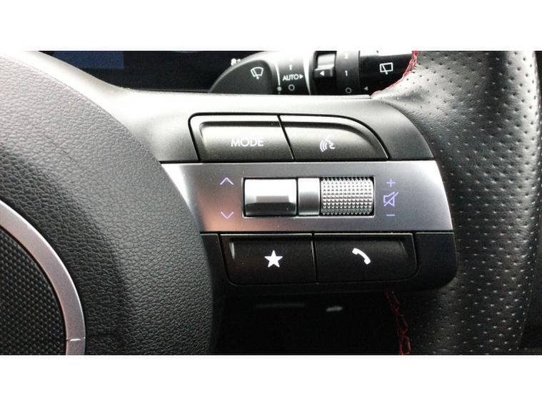 Inside, the N Line trim brings a sporty feel with premium touches including a modern touchscreen infotainment system with Apple CarPlay and Android Auto, Bluetooth connectivity, air conditioning, cruise control, a multifunction steering wheel with N Line badging, and supportive sports-style seats. The cabin feels well-designed and comfortable, with good space for passengers and a practical boot for everyday use.