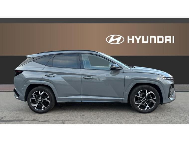 Hyundai TUCSON 1.6T N Line 5dr Petrol Estate, , This Hyundai Tucson Estate 1.6T N Line, finished in striking Shadow Grey and showing just over 8, 500 miles, combines dynamic performance, sporty styling and premium specification in a versatile SUV package. Powered by a 1.6 litre turbocharged petrol engine paired with a smooth automatic transmission, it delivers responsive performance with confident handling and refined everyday drivability. The N Line specification adds distinctive sporty design touches inside and out, including bold body styling, larger alloy wheels, alloy sports pedals and unique interior accents for a more engaging and athletic feel. The well equipped cabin includes a touchscreen infotainment system with Apple CarPlay and Android Auto, digital instrument cluster, adaptive cruise control, heated front seats, dual zone climate control and a comprehensive suite of advanced safety features. With its combination of striking looks, modern technology and low mileage, this Tucson N Line represents an exciting and stylish choice in the compact SUV segment. A personalised video presentation is available on request.