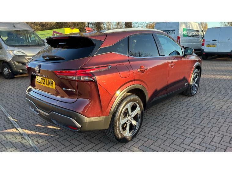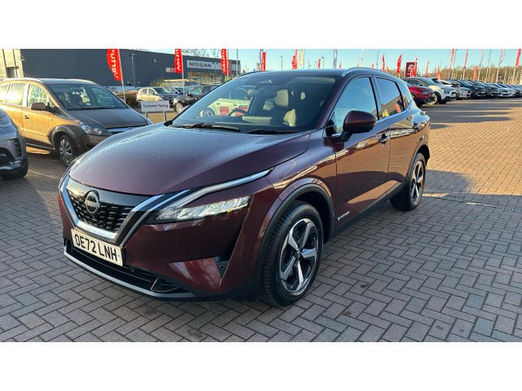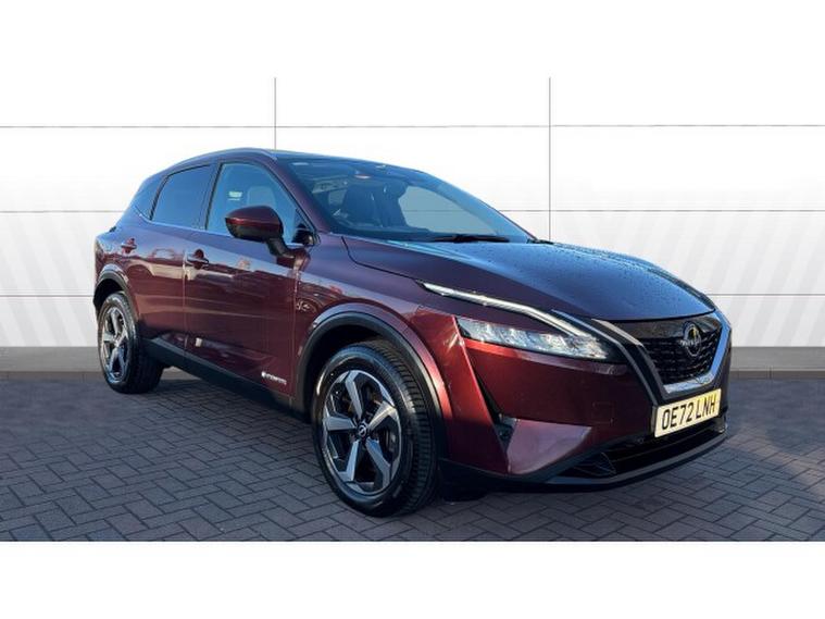 Nissan Qashqai 1.5 E-Power N-Connecta 5dr Auto Hybrid Hatchback, , This 72 plate Nissan Qashqai h e-POWER N-Connecta offers great looks, huge specification and low running costs at a great value price making it a great choice for your next car. This stylish SUV features a 1.5 litre petrol hybrid engine, meeting Euro 6 emission standards. The N-Connecta trim level comes equipped with a suite of intelligent features designed to enhance your driving experience, including Intelligent Blind Spot Intervention, Intelligent Key with keyless entry, and an Intelligent Around View Monitor complete with a 360 degree camera and rear view camera for effortless parking assistance. Experience impressive performance with a 0-62mph acceleration time of just 7.9 seconds, while also benefiting from a highlight fuel economy of 54 miles per gallon. The Qashqai also offers generous boot space, making it practical for all your needs.