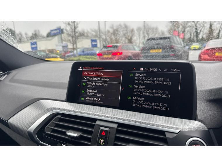 Designed for both comfort and excitement, this X4 features adaptive suspension, M Sport brakes, M Sport seat belts and acoustic glass for a controlled and immersive driving experience. The interior offers premium comfort with heated front sport seats, ambient lighting and a Harman/Kardon surround sound system. Practicality is enhanced with a larger fuel tank, folding wing mirrors, sun protection glass and front LED foglights. Parking Assistant, Live Cockpit Professional and DAB radio provide convenience and advanced connectivity, while M Sport exterior styling and high-gloss Shadowline trim complete the athletic look.