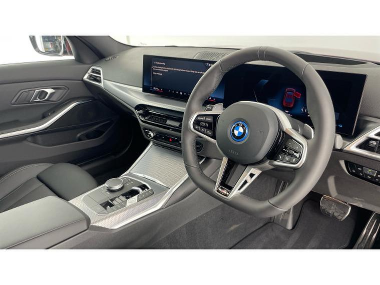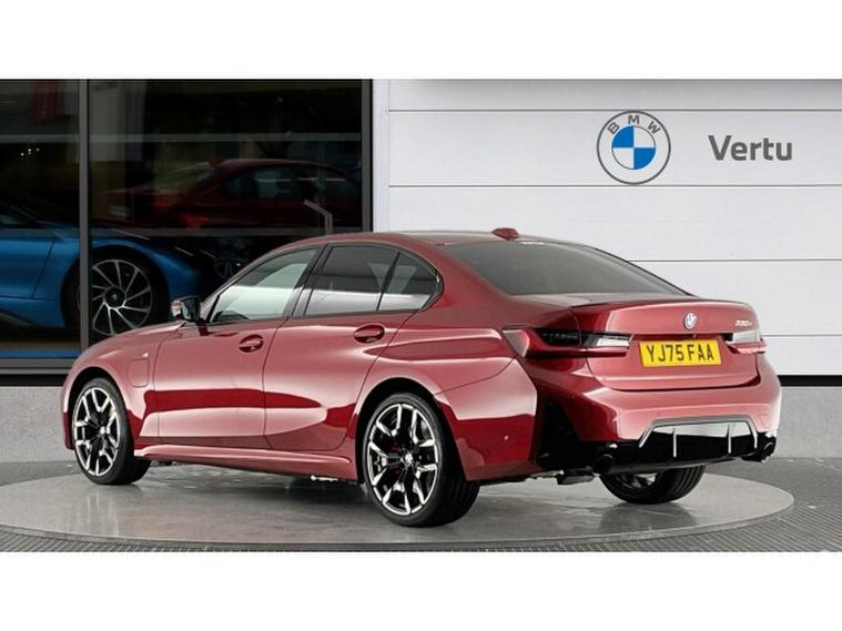 BMW 3 Series 330e M Sport 4dr Step Auto [Tech Pack] Saloon, , This 2025 BMW 330e M Sport is a BMW manufacturer approved vehicle with only one owner from new. It features a 2.0L petrol plug-in hybrid engine, meeting Euro 6 emission standards. This M Sport variant comes equipped with a Comfort Pack, which includes keyless entry and wireless phone charging, alongside a Driving Assistant system and adaptive LED headlights. For enhanced comfort, it also boasts front lumbar support and M adaptive suspension.