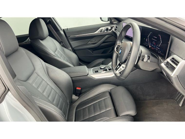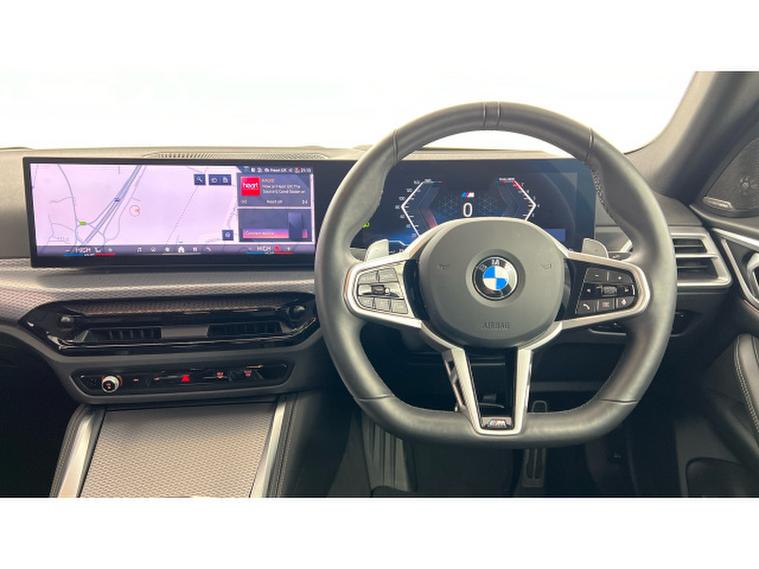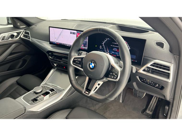 Inside, the cabin offers a premium and sporty atmosphere with electric memory seats, front heated seats and a heated steering wheel ensuring comfort in every season. The Live Cockpit Professional display and Harman/Kardon surround sound system enhance every journey, while ambient lighting adds a sophisticated touch. Driving confidence is boosted by M Sport suspension and M Sport brakes, supported by features such as Parking Assistant Plus, High-Beam Assistant, cruise control and adaptive LED headlights. Finished with the M Sport Pro Package, high-gloss Shadowline detailing, M Sport seat belts and a distinctive M Sport spoiler, this 4 Series delivers both style and substance.