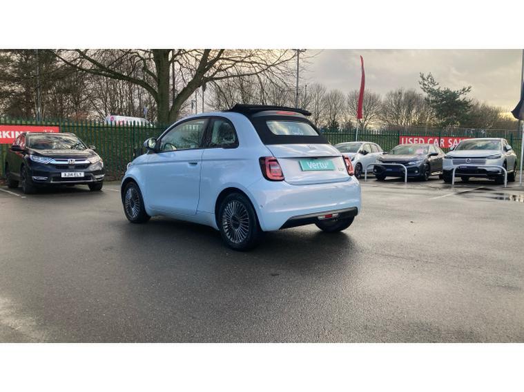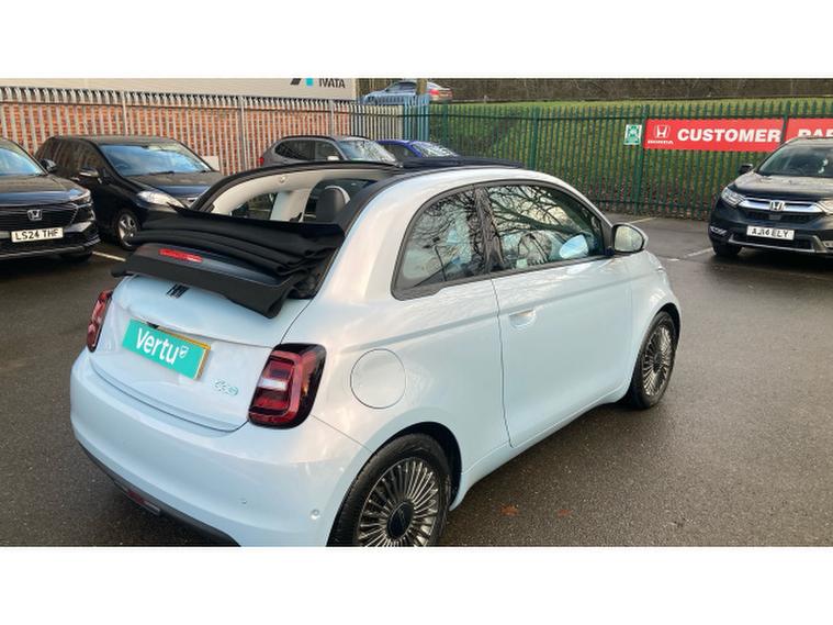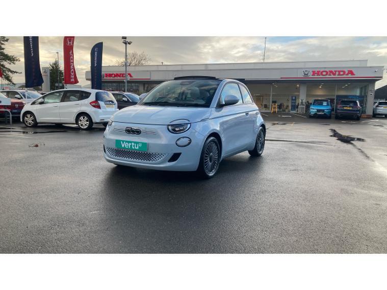 Fiat 500 87kW Icon 42kWh 2dr Auto Electric Convertible, , Finished in Celestial Blue with Grey Interior. Factory Options - Magic Eye Pack, Winter Pack and Comfort Seat Pack. What a fine example of this electric Fiat 500 Cabrio, finished in a great colour with a number of factory fitted options. Contact us now at Derby Honda to arrange your personal viewing of this vehicle. Decide WHEN you would like to experience this vehicle by giving us a call to make an appointment to test drive. Finance and part exchange facilities available. All our Vertu Select vehicles give you reassurance of knowing that all cars have to meet our high standards before they reach the forecourt. DON'T MISS OUT ON THIS CAR. Contact us now! We are open Monday to Friday 8.45am to 6.30pm and Saturday 8.45am to 5pm. Please give us a call for directions or our postcode for your sat nav is DE21 4SX. Derby Honda is centrally located just 12 miles from the M1 motorway Junction 25 if travelling from the South and 29 miles from the M1 motorway Junction 28 if travelling from the North. The nearest train station is Derby (DBY). The nearest airport is Nottingham East Midlands (EMA) - COME AND VISIT US TODAY!