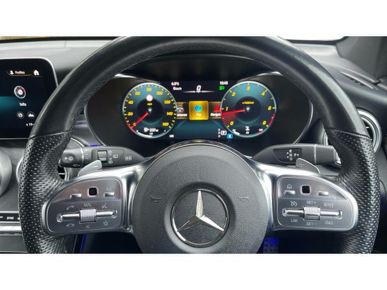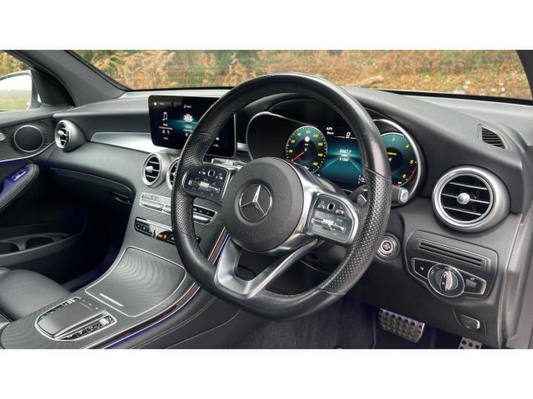 From the moment you see the 20-inch AMG alloy wheels in titanium grey, privacy glass and purposeful AMG Line detailing, its clear this GLC means business. Under the bonnet, the refined 300d diesel engine paired with the seamless 9G-TRONIC automatic gearbox delivers effortless performance, while 4MATIC all-wheel drive provides reassuring grip and confidence in all conditions.