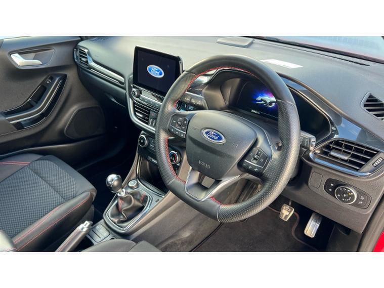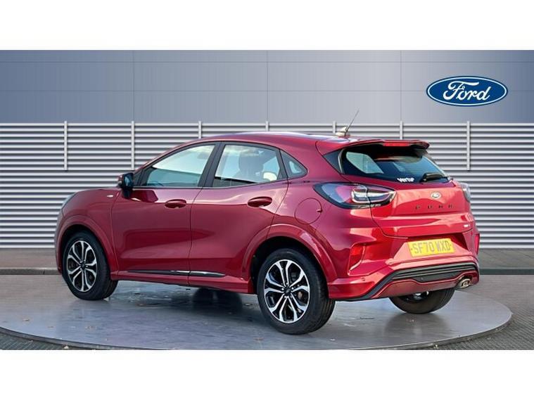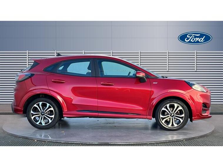 Ford Puma 1.0 EcoBoost Hybrid mHEV ST-Line 5dr Petrol Hatchback, , Gloucester Ford have this low mileage for its age Ford Puma 1.0 EcoBoost Hybrid mHEV ST-Line finished in Fantastic Red. This Puma 1.0 EcoBoost mHEV ST-Line is a standout compact SUV that perfectly blends sporty design, intelligent technology, and everyday practicality. Finished in the striking Fantastic Red, this Puma makes an immediate visual impact, with its athletic ST-Line styling, sculpted body lines, and confident road presence that reflects Fords dynamic design DNA. The 1.0 EcoBoost mild hybrid (mHEV) engine delivers an impressive balance of performance and efficiency. It provides smooth, responsive acceleration while optimising fuel economy, making it ideal for both urban commuting and longer journeys. The mild hybrid system enhances driveability by supporting the engine during acceleration and improving overall refinement. Inside, the Puma ST-Line offers a modern, driver-focused cabin that feels both sporty and comfortable. Ford SYNC 3 sits at the heart of the infotainment system, providing intuitive controls, clear graphics, and seamless connectivity. With Apple CarPlay, you can effortlessly access navigation, music, calls, and messages, keeping you connected and entertained while on the move. Practicality and convenience are further enhanced with rear parking sensors, making manoeuvring and parking stress-free, even in tighter spaces. The heated front windscreen is a particularly welcome feature, offering quick and effortless defrosting on cold mornings and improving visibility without delay. Overall, the Ford Puma 1.0 EcoBoost mHEV ST-Line is a well-rounded and stylish vehicle that excels in comfort, technology, and efficiency. Its bold Fantastic Red finish, combined with advanced features and sporty character, makes it an excellent choice for drivers seeking a compact SUV that is both exciting to drive and perfectly suited to modern life.