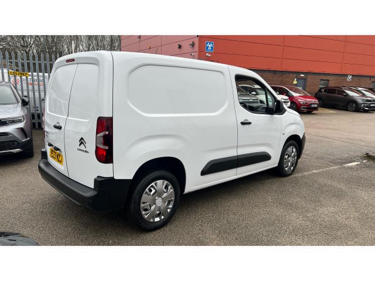 Citroen Berlingo M Diesel 1.5 BlueHDi 1000Kg Enterprise Ed 100ps 6 Speed S/S, , This 2023 Citroen Berlingo M (Medium) 1.5 BlueHDi 1000kg Enterprise Edition in white is a front-wheel-drive compact panel van with a 100hp (102hp/75kW) diesel engine, 6-speed manual gearbox, and Stop & Start (S/S) technology. Key specs include a 1, 000kg payload, approx. 3.3-3.9 /(m {3}/) load volume, air conditioning, rear parking sensors, 8-inch touchscreen with Apple CarPlay/Android Auto, and a 3-seat cabin.