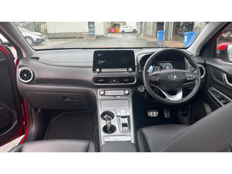 Parking and low-speed manoeuvring are effortless thanks to the rear parking camera and front and rear parking sensors, giving you confidence in even the tightest spaces. With its smooth, responsive 150kW electric motor and impressive 64kWh battery, the Kona Electric offers strong performance with zero emissions, all wrapped up in a sleek and modern design.