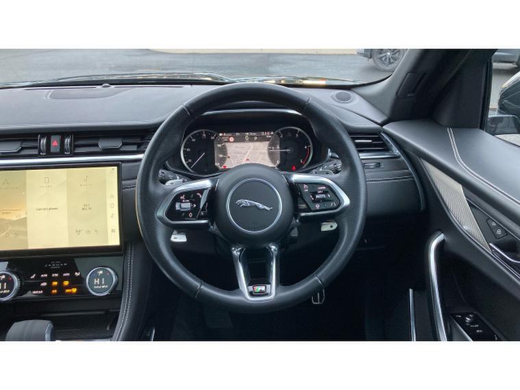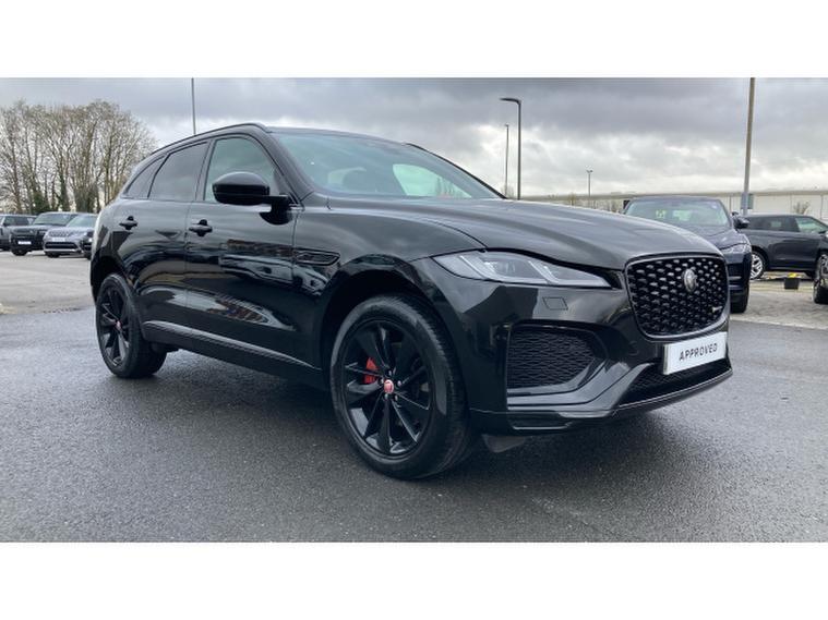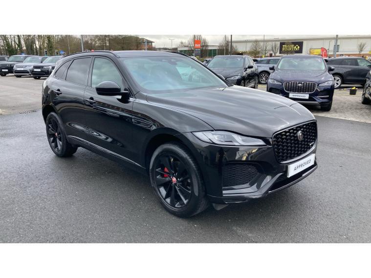 Jaguar F-Pace 2.0 D200 R-Dynamic Black 5dr Auto AWD Diesel Estate, , Vertu JLR Bolton are proud to offer this stunning Jaguar F-Pace 2.0 D200 R-Dynamic Black finished in Santorini Black metallic with ebony grained leather interior. This one owner car is packed full of options which include Sliding glass panoramic sunroof, adaptive dynamics, configurable dynamics, Jaguar in drive control with adaptive surface response, rear seat remote release leavers and red brake callipers. Standard features include 11.4 inch touchscreen with Pivi pro Navigation, 3D surround camera, heated leather seats, cruise control, dual zone climate control, Bluetooth, DAB radio, parking sensors, Apple car play, heated windscreen, interactive driver display, trip computer, Isofix, auto lights and wipers, LED headlights, black pack, 20 inch gloss black alloys, privacy glass, push button start, steering wheel audio controls and much more. This car is ready to view, test drive and drive away today and comes as part of the Approved JLR programme which includes 12 months warranty, 12 months roadside assistance, MOT test warranty and 165 multi point inspection as part of purchase.