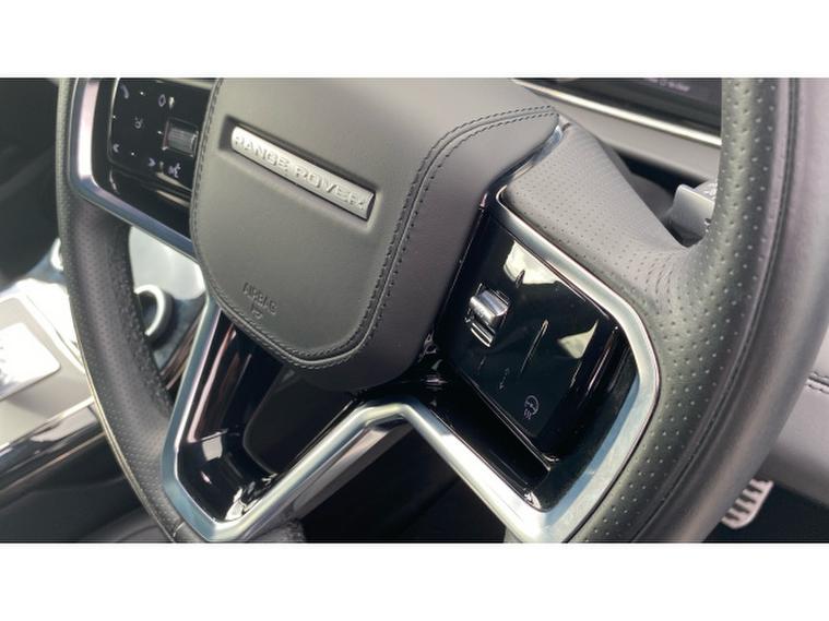 The R-Dynamic HSE specification includes LED headlights with signature DRL, Touch Pro infotainment system with navigation, Apple CarPlay and Android Auto, DAB radio and Bluetooth connectivity. Additional features include Meridian sound system, front and rear parking sensors with rear camera, adaptive cruise control, lane keep assist, autonomous emergency braking, keyless entry, powered tailgate, dual zone climate control, heated front seats and electric seat adjustment, delivering a refined and confident driving experience.